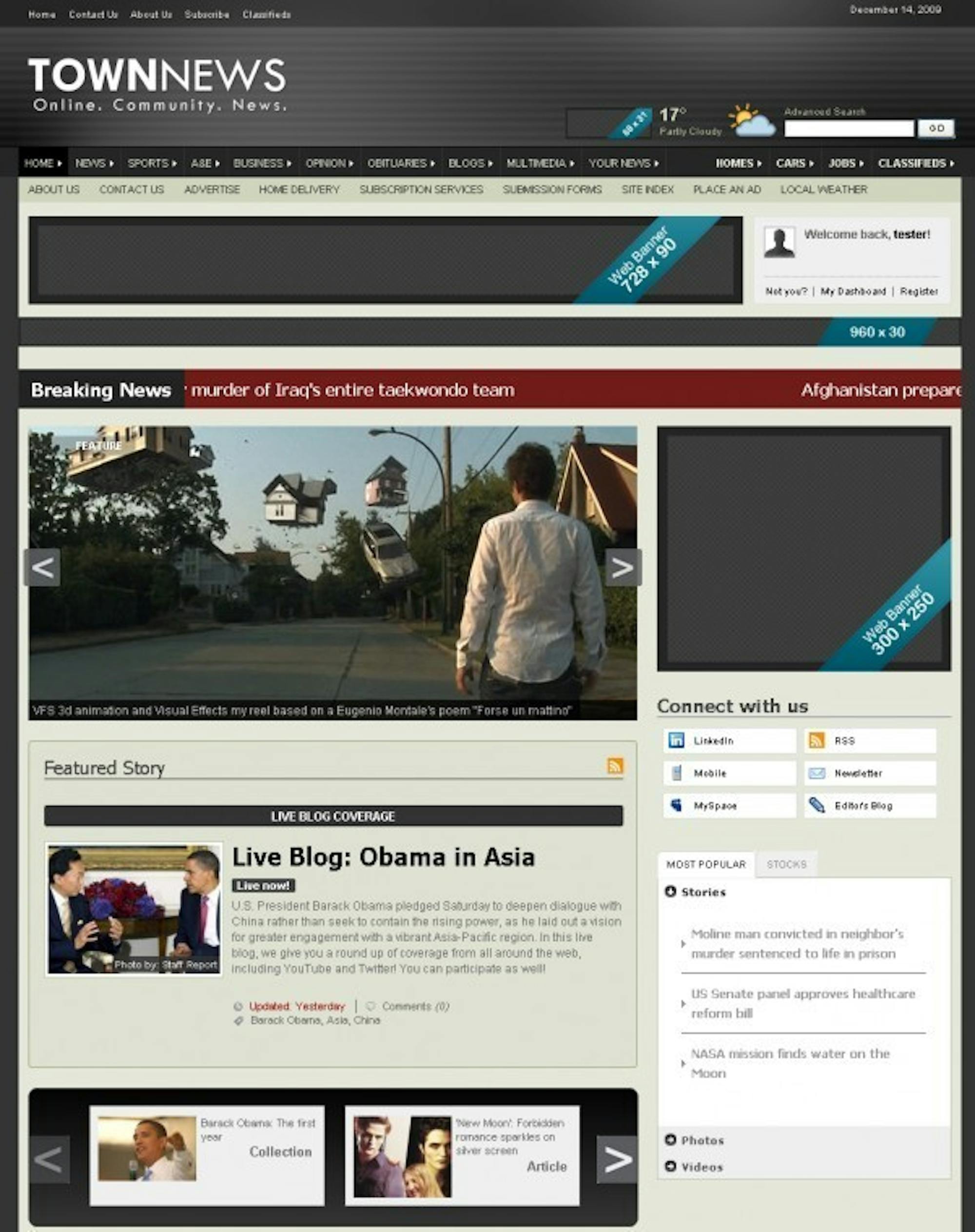 The Demo site was established in October of 2009, to help showcase the design and products of the Blox Content Management system from TownNews.com.