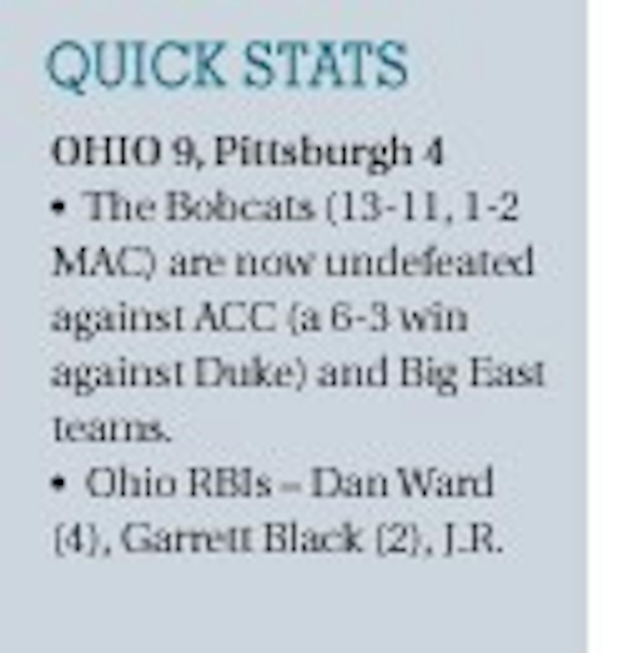 Pittsburgh’s colors might as well have been black and blue instead of blue and gold after the Bobcats finished with the Panthers’ pitching staff.