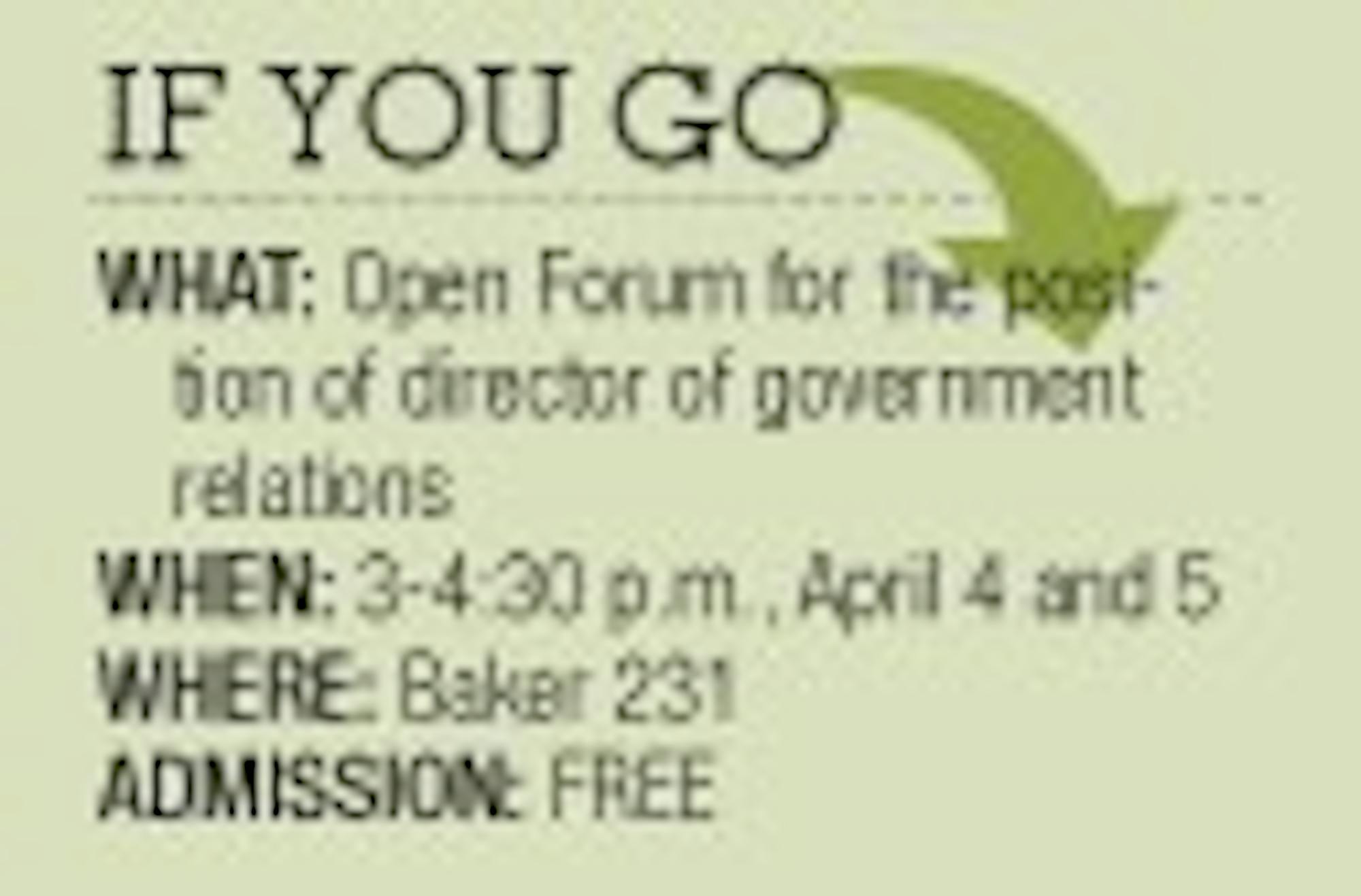 Ohio University will hold two open forums next week for the finalists for the director of government relations position.