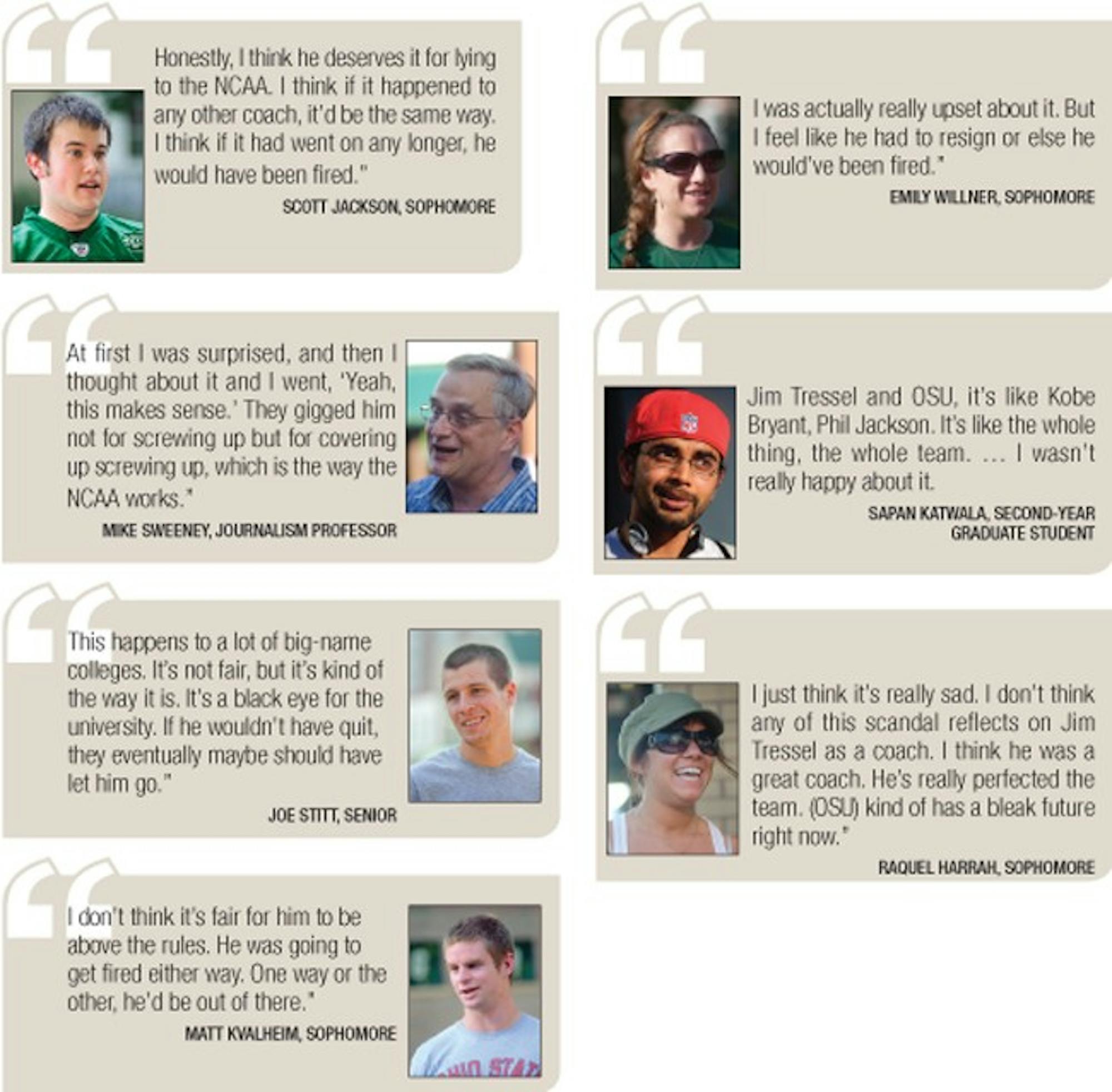Reactions from OU students were mixed. Many, like graduate student Helen Marr, thought it was only a matter of time before Tressel was fired.