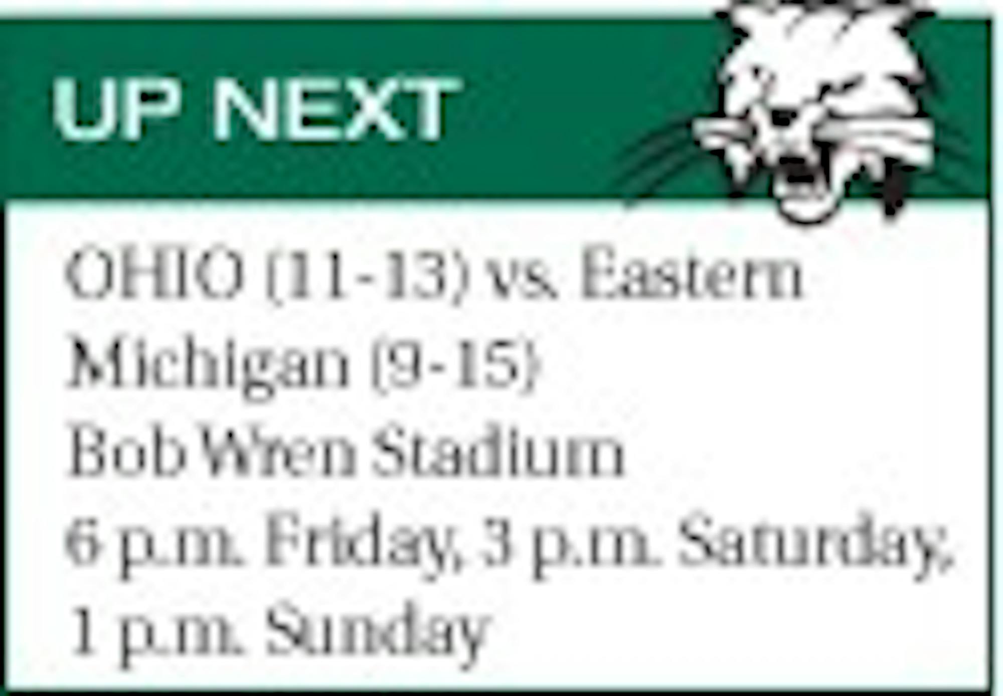 Ohio senior first baseman Jensen Painter is pacing the conference with 10 home runs, and his 10 doubles are second only to Kent State senior Jimmy Ryder’s 14. Painter is third in the MAC in slugging percentage, fourth in hits and fifth in runs scored.