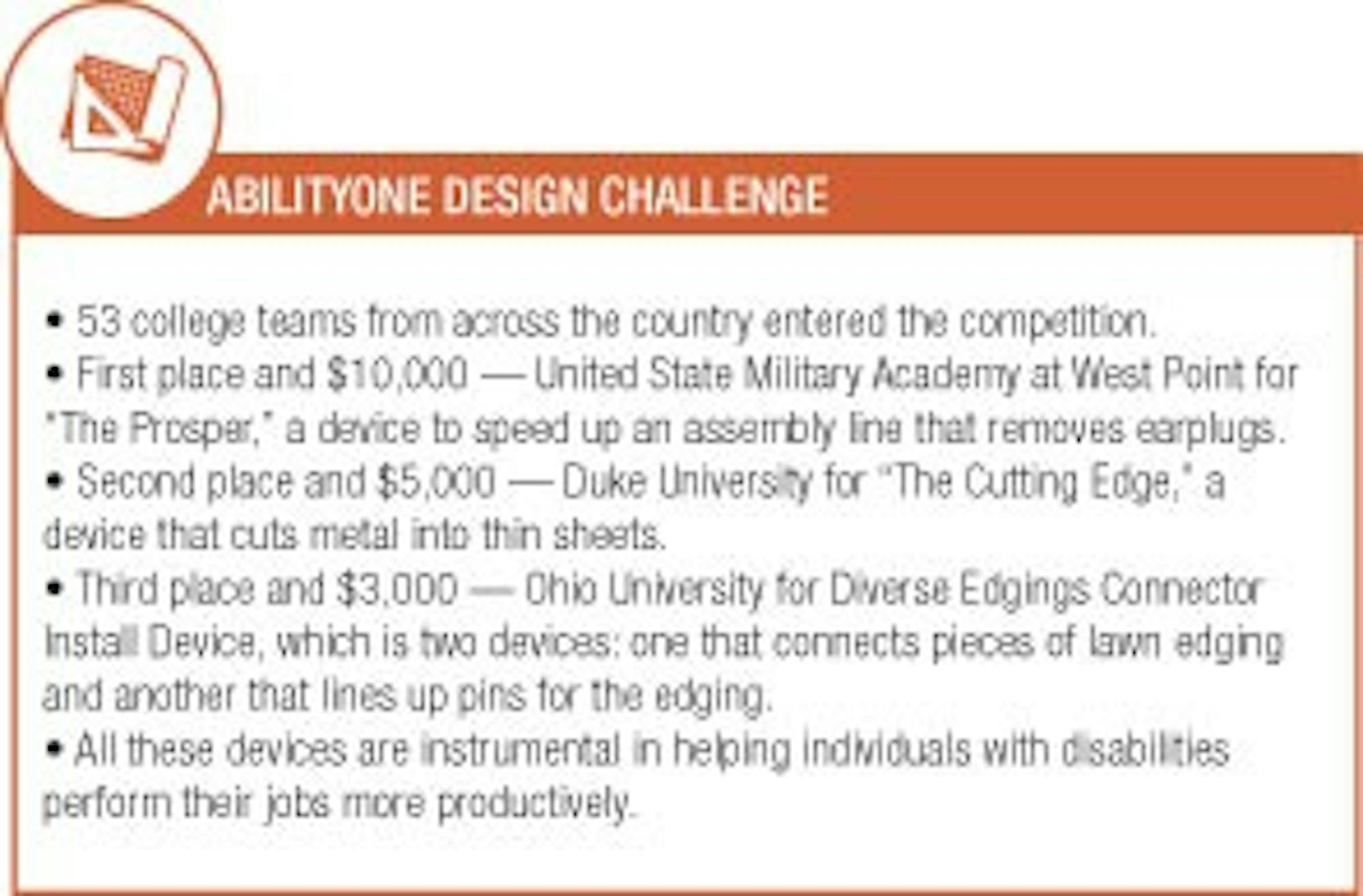 Six OU 2012 graduates of the Russ College of Engineering and Technology learned this month they received third place in the AbilityOne Design Challenge, a national competition that draws on the expertise of young college students to design and build a device that will help those with disabilities better perform in their jobs.