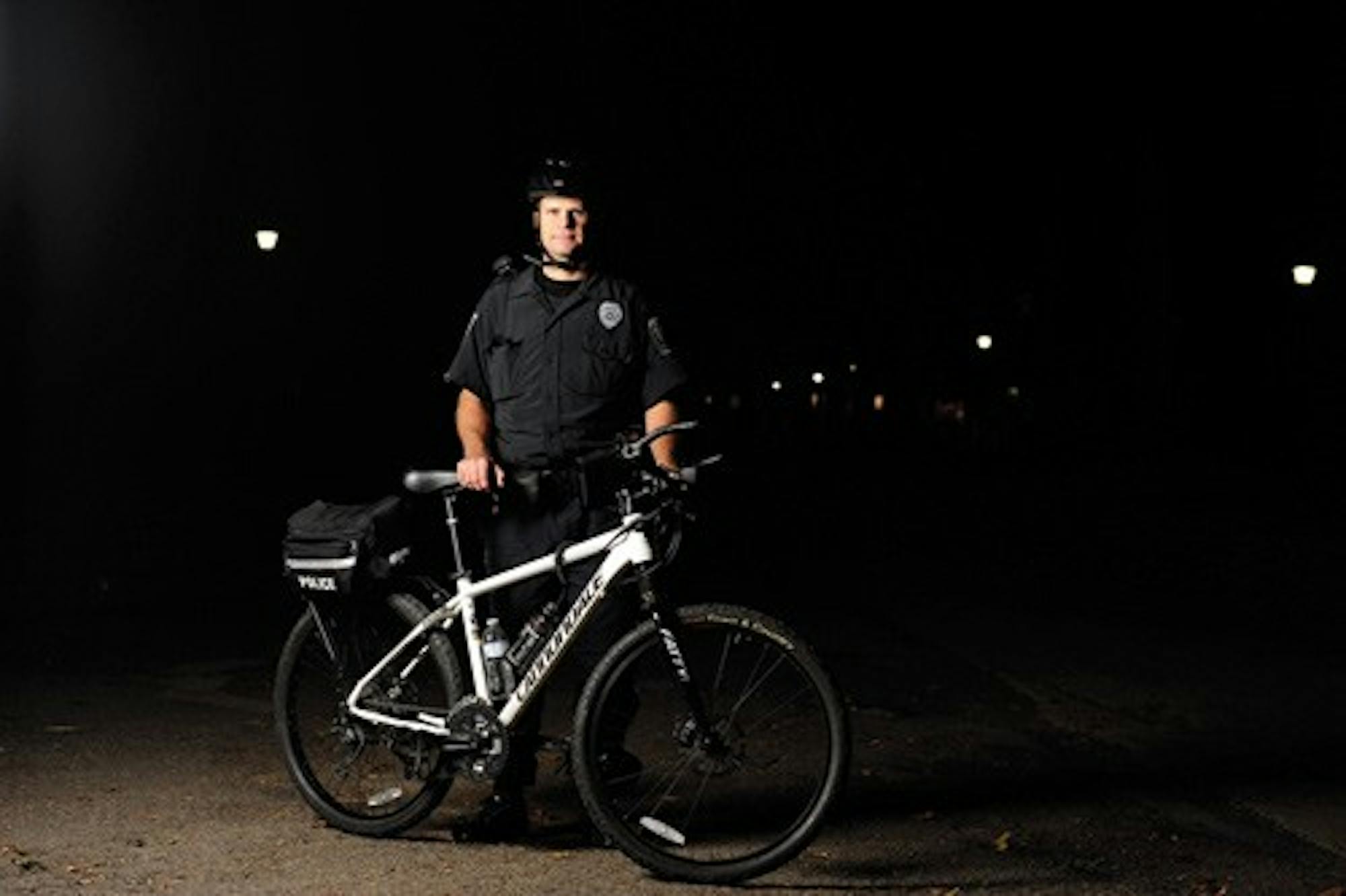 Officer Kevin Frith works the night shift as a Bike Patrol Officer for the Ohio University Police Department. Using a bike allows him to move faster than on foot while still enabling him to reach areas on campus such as the greens that patrol cars cannot reach. Video by Bethany Joy Lilja.