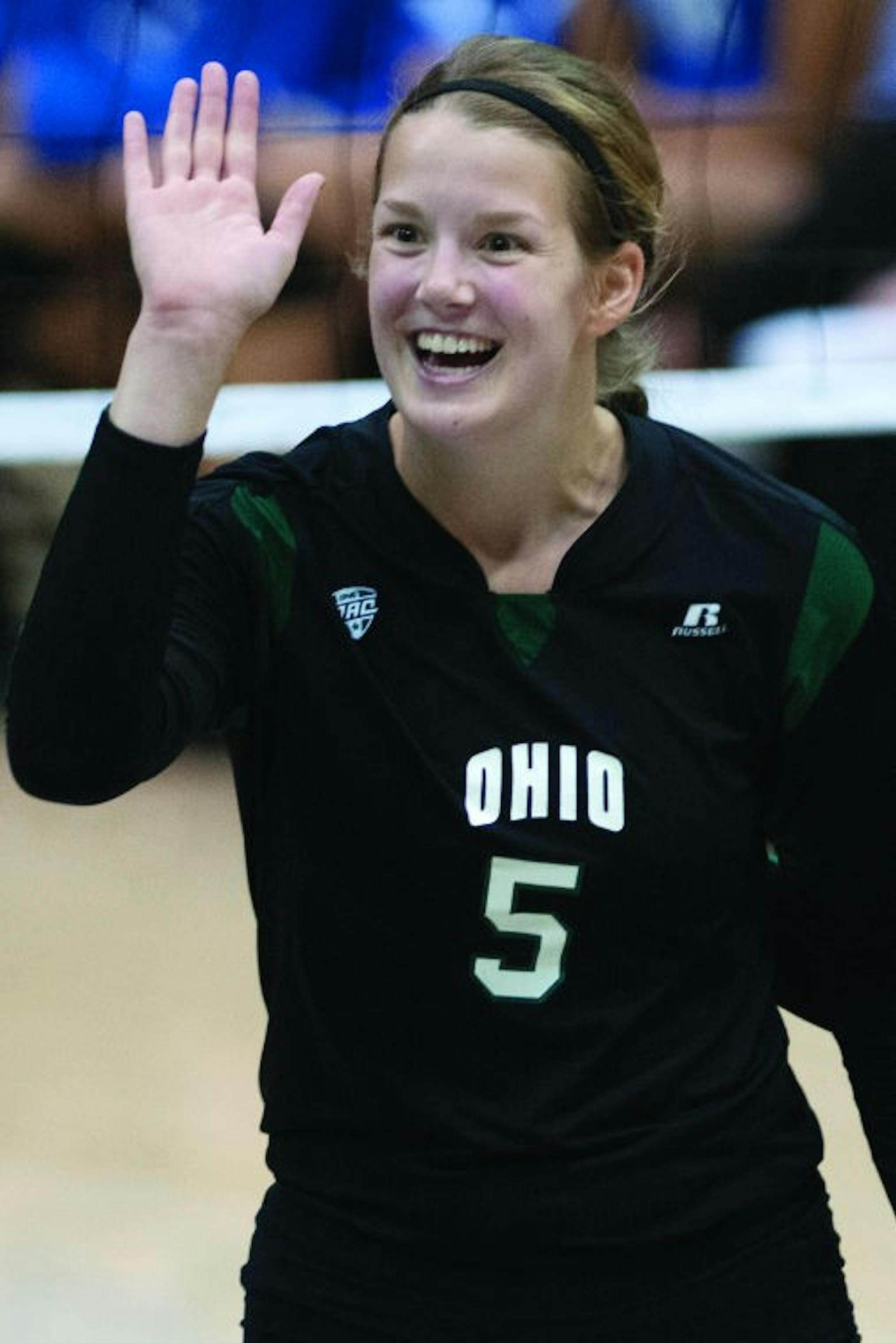 Sophomore middle blocker Serena Warner scored four-and -a-half of the Bobcats’ final six points in Ohio’s sweep of Western Michigan the following day.