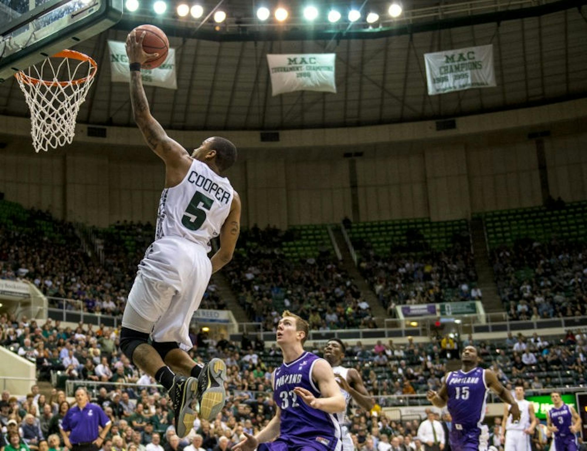 Ohio senior guard D.J. Cooper rises up for a layup during Ohio's season-opener against Portland Saturday. (Jason Chow | Staff Photographer)
