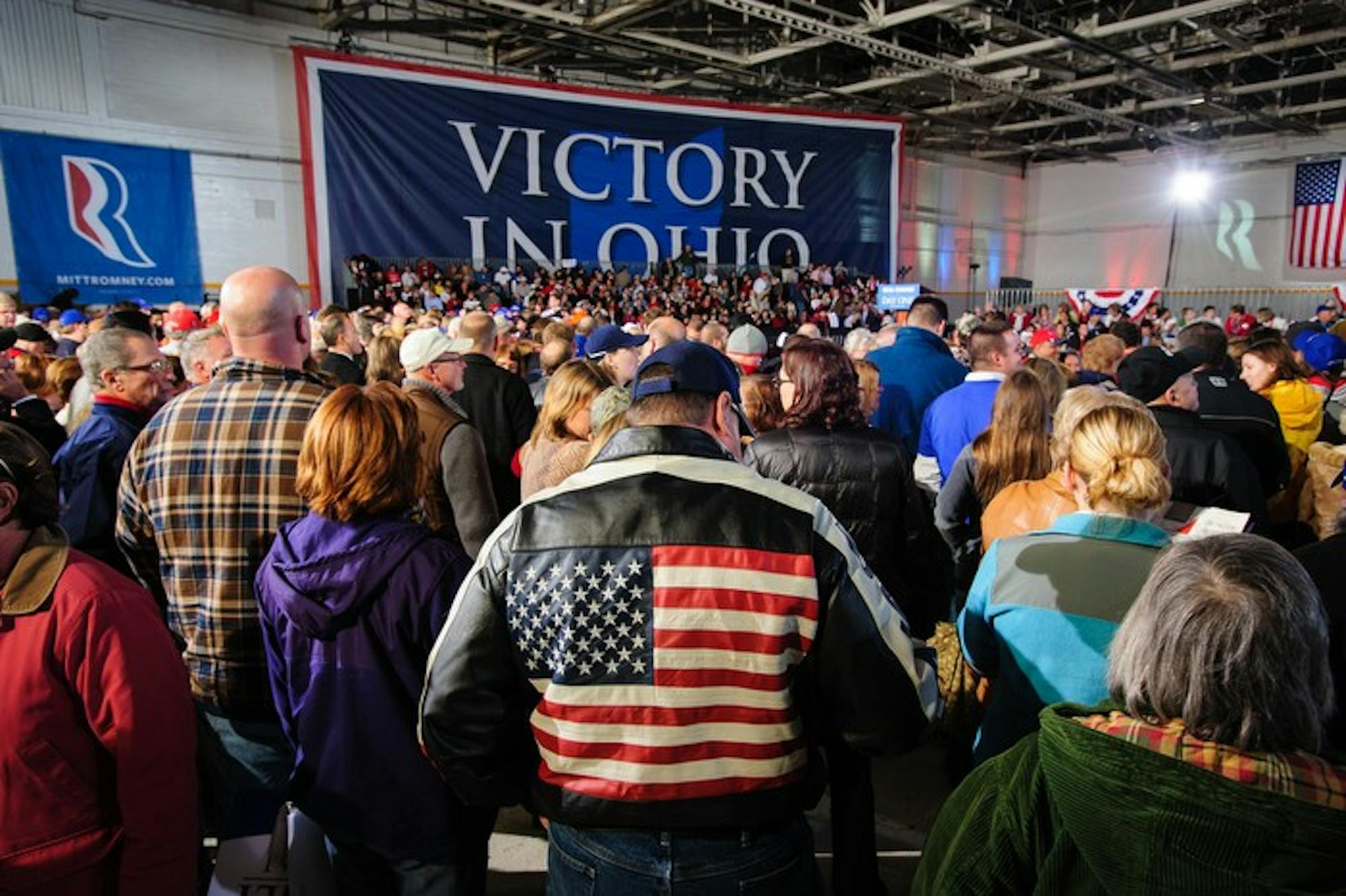 Crowds gather before the Romney Victory Rally at the Landmark Aviation building at the Columbus International Airport in Columbus, Ohio, on Monday, November 5, 2012. (Brien Vincent | Staff Photographer)
