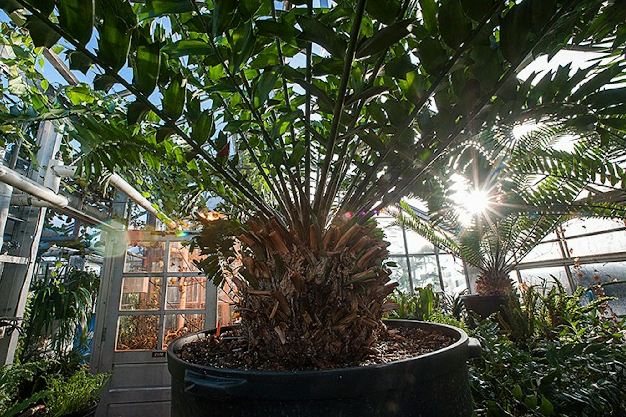 A group of Cycads spread their leaves towards the cieling of the Ohio University greenhouse on Friday, Jan. 18. Cycads are an ancient group of plants common during the Jurassic Period. (Dustin Lennert | Picture Editor)