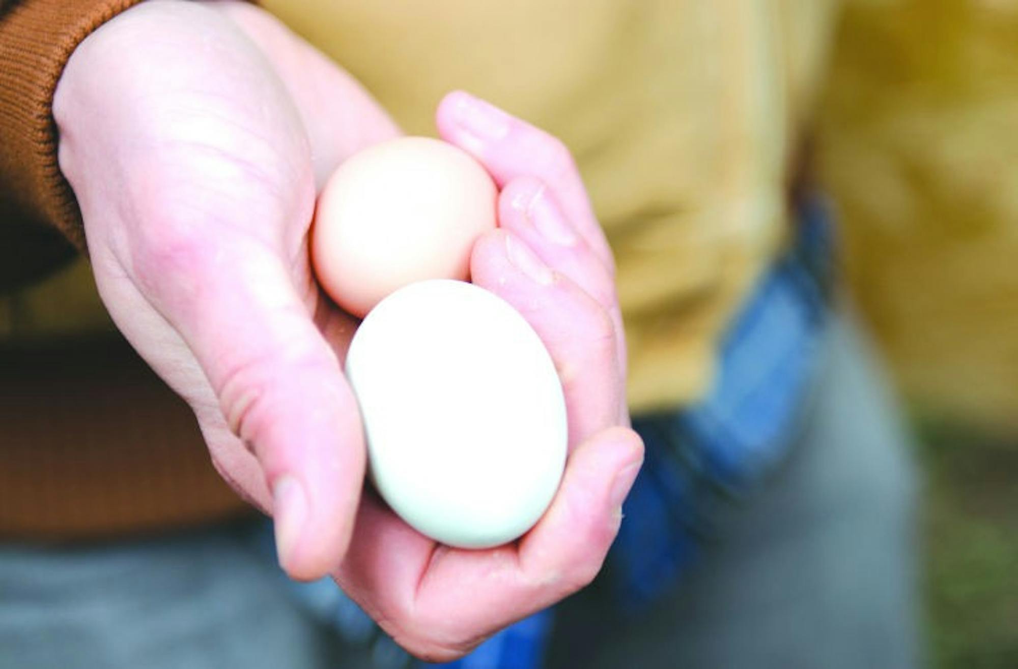 Erik Peterson finds eggs that his chicken laid earlier that day. (Eli Hiller | For The Post)