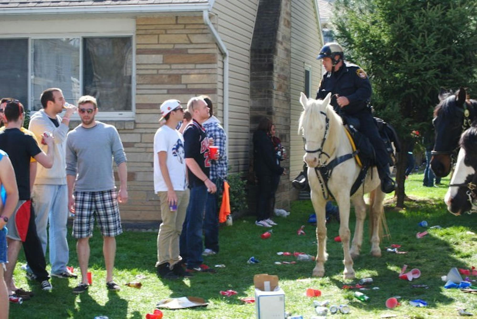 Police officers walked up and down the street, closing parties they deemed in violation of the city's nuisance party ordinance.