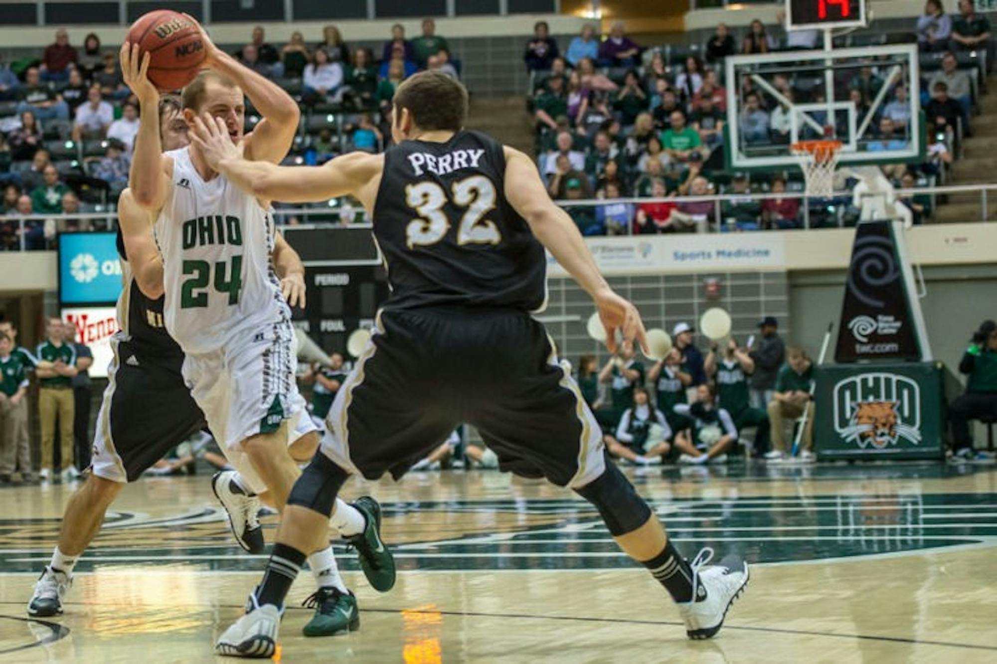 Travis Wilkins carves through the defense against the Western Michigan Broncos at The Convo. The Bobcats are now 0-2 against the Broncos with their 73-63 loss on Feb. 19. (Jason E. Chow | File Photo)