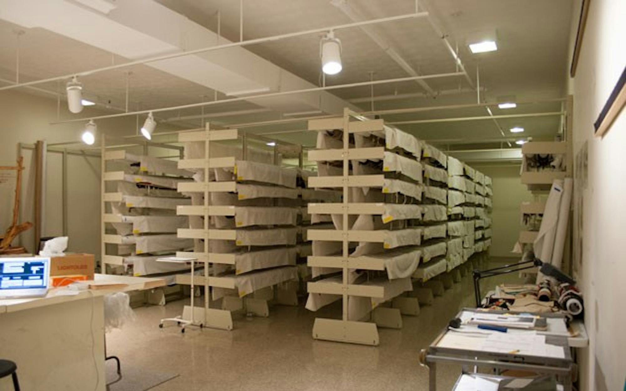 In order to preserve the integrity of art in storage, OU’s Kennedy Museum of Art keeps pieces that are not on display in storage rooms with temperatures between 60 and 70 degrees and a humidity reading of about 50 percent. Jeffrey Carr, registrar and preparator of the museum, walks through the rooms almost daily to spot check the condition of rooms. (Provided)