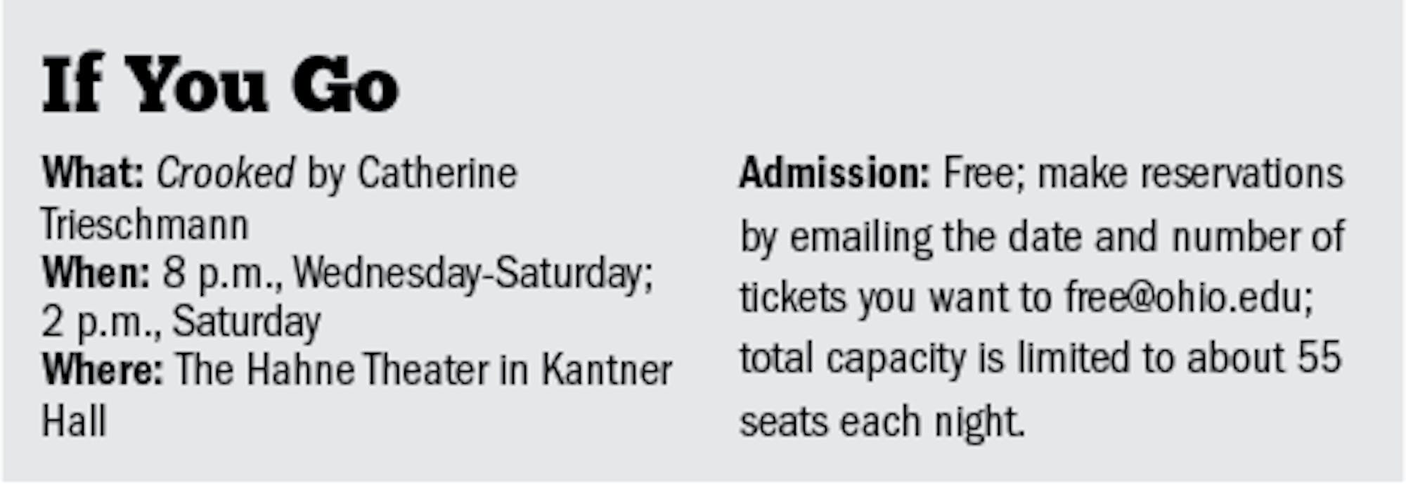 In their first year, the graduate directors are given $50 to $100 to do a realism project, a play rooted in reality with simple production values and a small cast. This year’s realism project is Crooked by Catherine Trieschmann, a play following three women on their journeys toward self-discovery and the acceptance of love and truth.