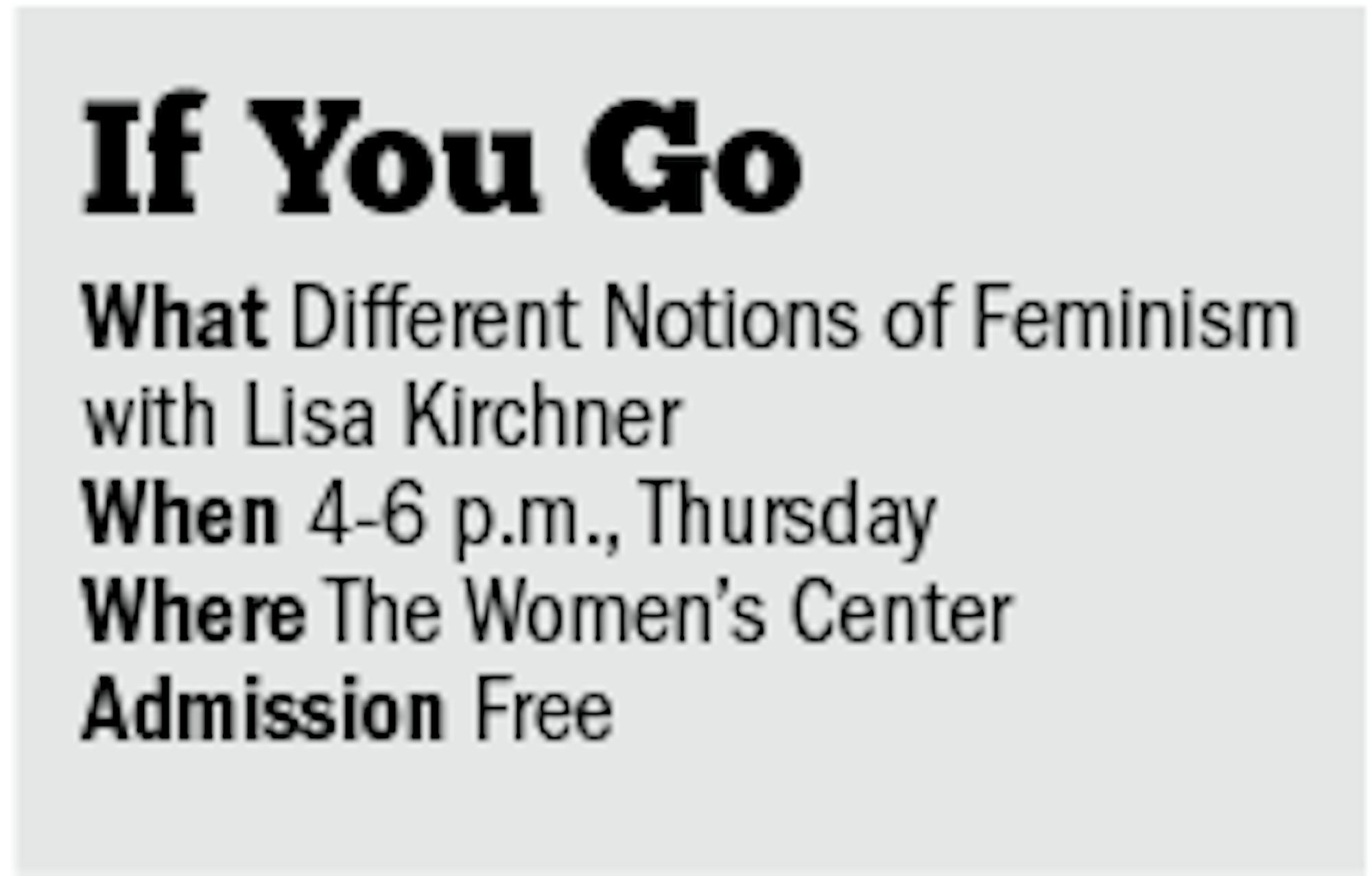 “I’m going to talk about different notions in feminism,” Kirchner said. “I’m going to talk about my experience in Qatar because I went into that environment thinking ... ‘Wow I’m really going to set an example of what it’s like to be a liberated American women,’ and with my experiences there I realized that I wasn’t as liberated as I thought and I had a lot to learn.”