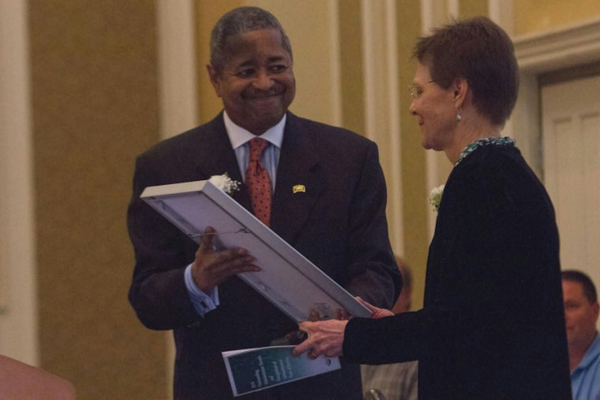 Service awardees were given a certificate and an OU-related gift, while recipients of the Outstanding Administrator Award received $1,000 from the Administrative Senate and a plaque that will hang in Chubb Hall.