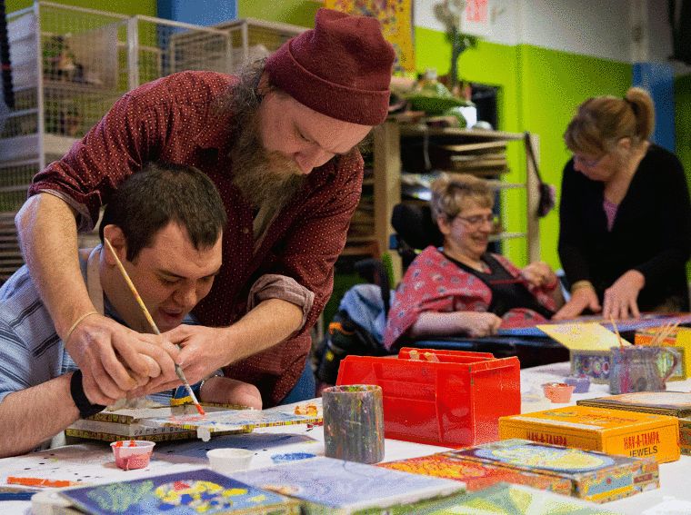 Biester’s effect on culture in the Athens community reaches wide, from his work with Passion Works artists both with and without developmental disabilities, to his own art both musical and visual.