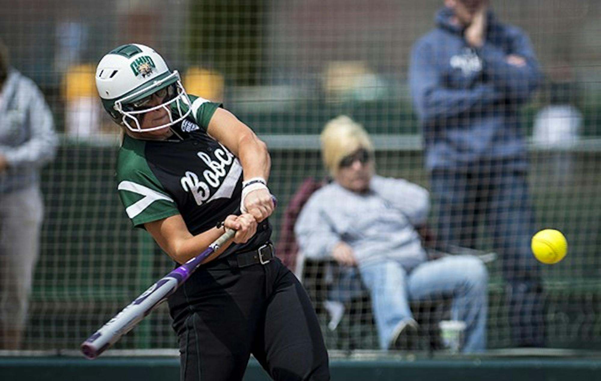 Adrienne Gebele bats against Buffalo in Athens, Ohio on Sunday, April 6, 2014. Ohio won 6-3. (JASON E. CHOW | DIRECTOR OF PHOTOGRAPHY)