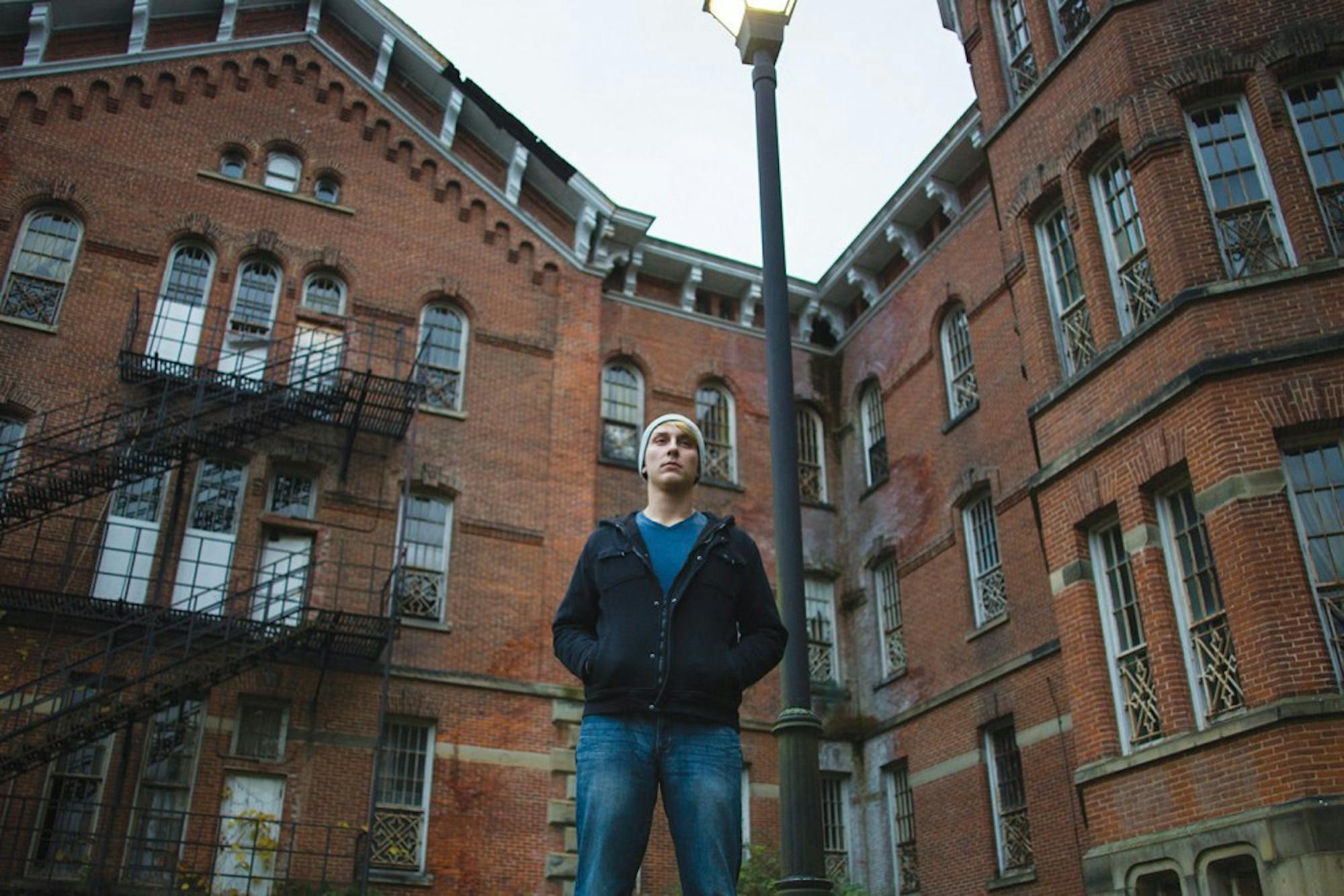 Nick Lantz, author of Ghosts & Legends of Athens, Ohio, poses for a portrait outside the former Athens Asylum for the Insane. His interest in the paranormal stems from his childhood house, which was haunted.
