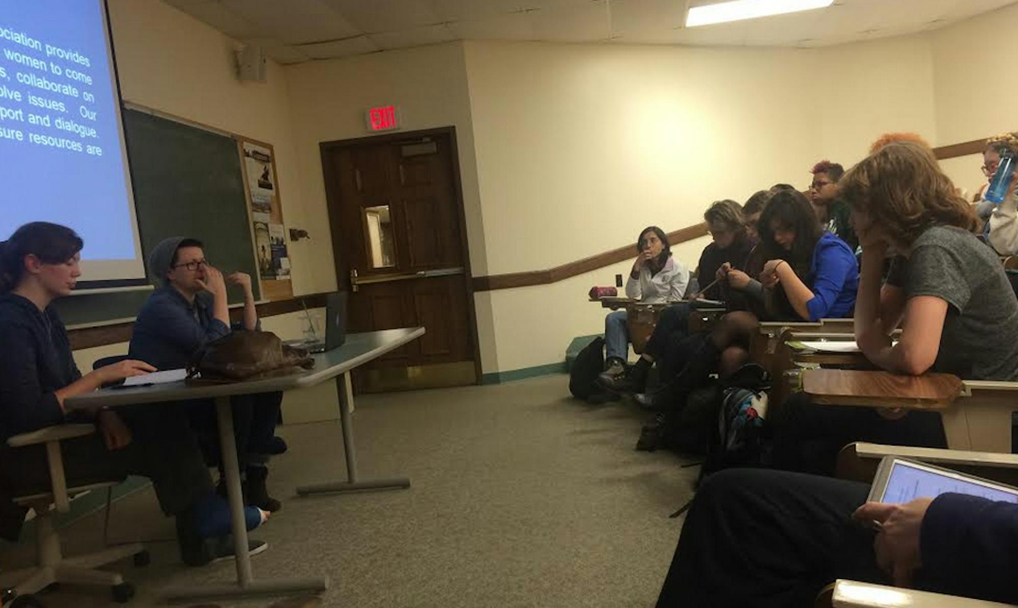 The meeting was lead mainly by Claire Chadwick, a junior studying sociology and women, gender and sexuality studies and co-founder of F--kRapeCulture, and Madison Koenig, commissioner of women’s affairs for Student Senate and a senior studying English. Chadwick and Koenig said they also worked with Liz Doyle, founder of Women in Business, as well as Shambrion Treadwell and Bobby Walker.