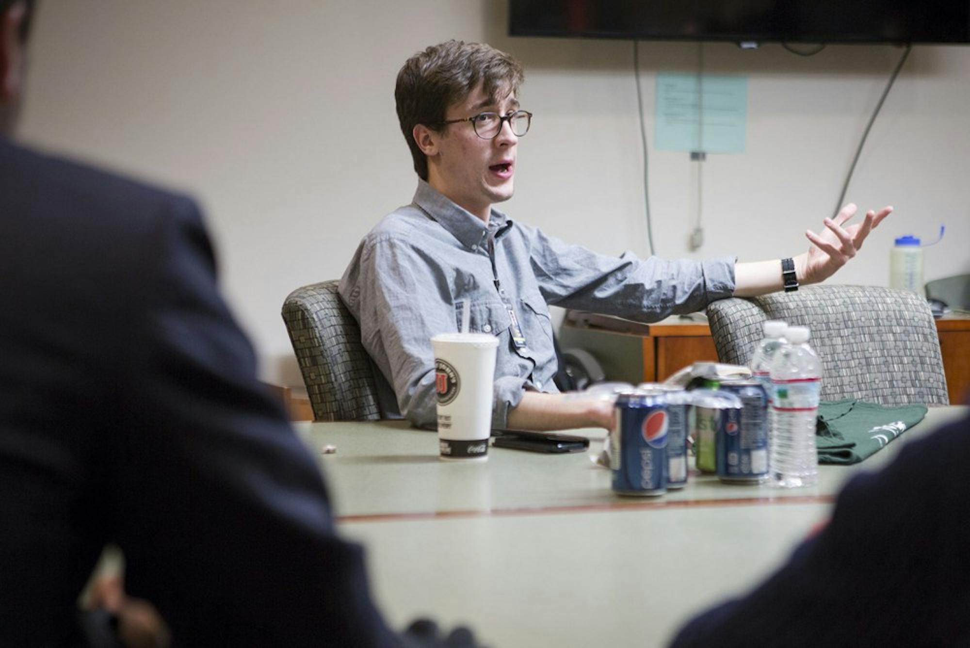 Isaac Smith met with roughly 15 students and faculty in a Bentley Annex conference room, where he discussed his case’s history and his thoughts following the settlement. The talk was arranged by OU's political science department.