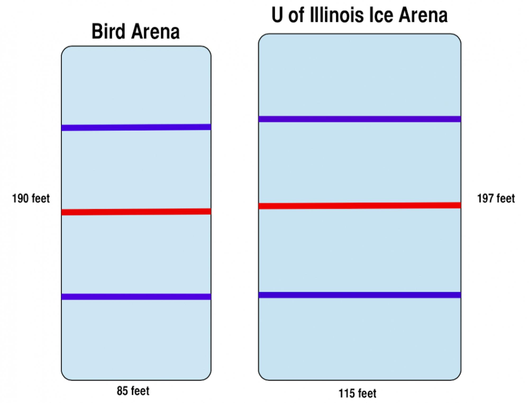 The Illinois Fighting Illini will host the division playoffs at their massive arena, which is often referred to as the “Big Pond.” The ice is 197 feet long and 115 feet wide, which is 30 feet wider than Ohio’s Bird Arena. The “Big Pond” doubles as a short-track speeding skating rink, according to head coach Sean Hogan.