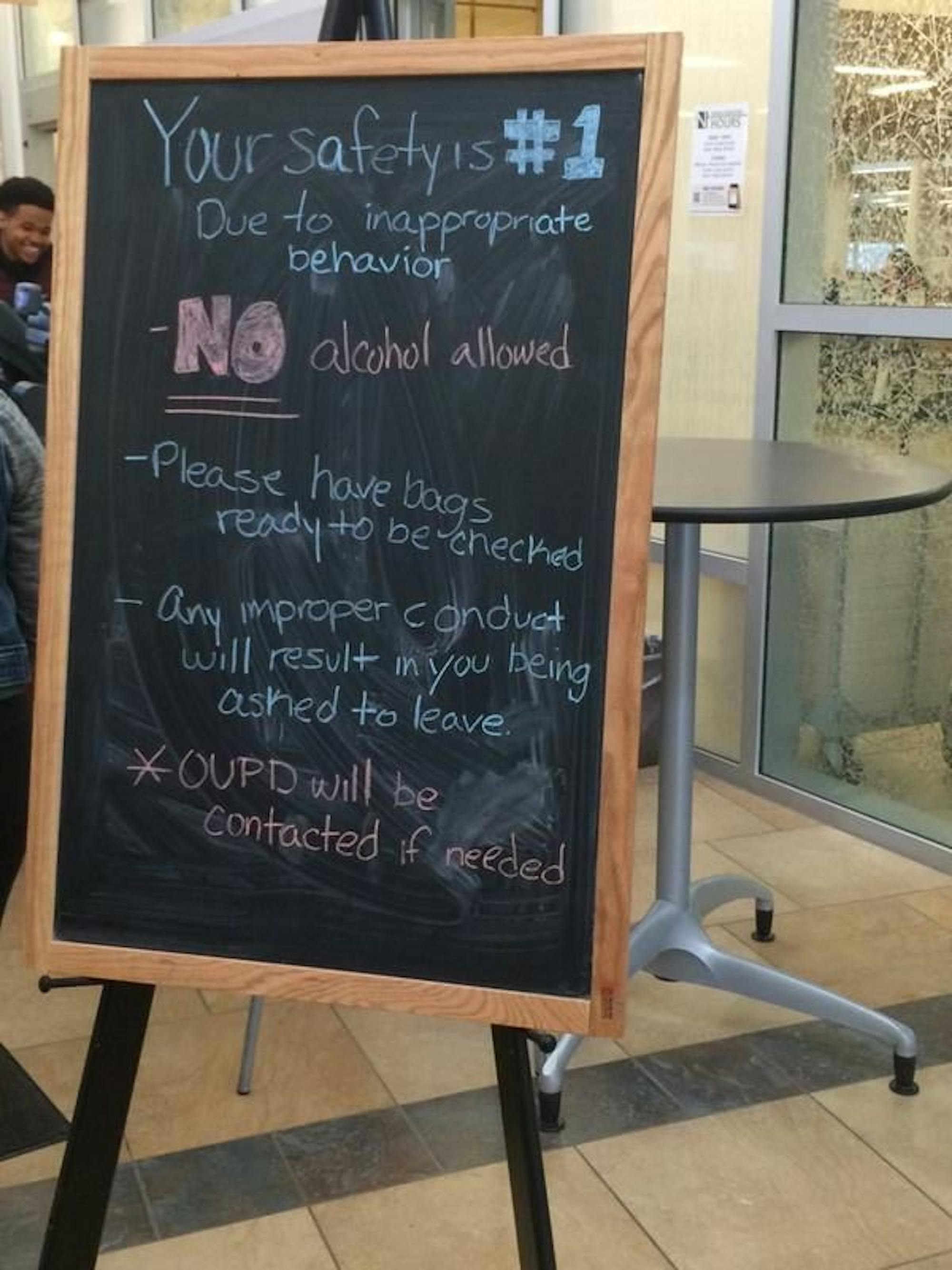 A sign posted at the entrance of the dining hall cited "inappropriate behavior" as the reason for the extra security.
