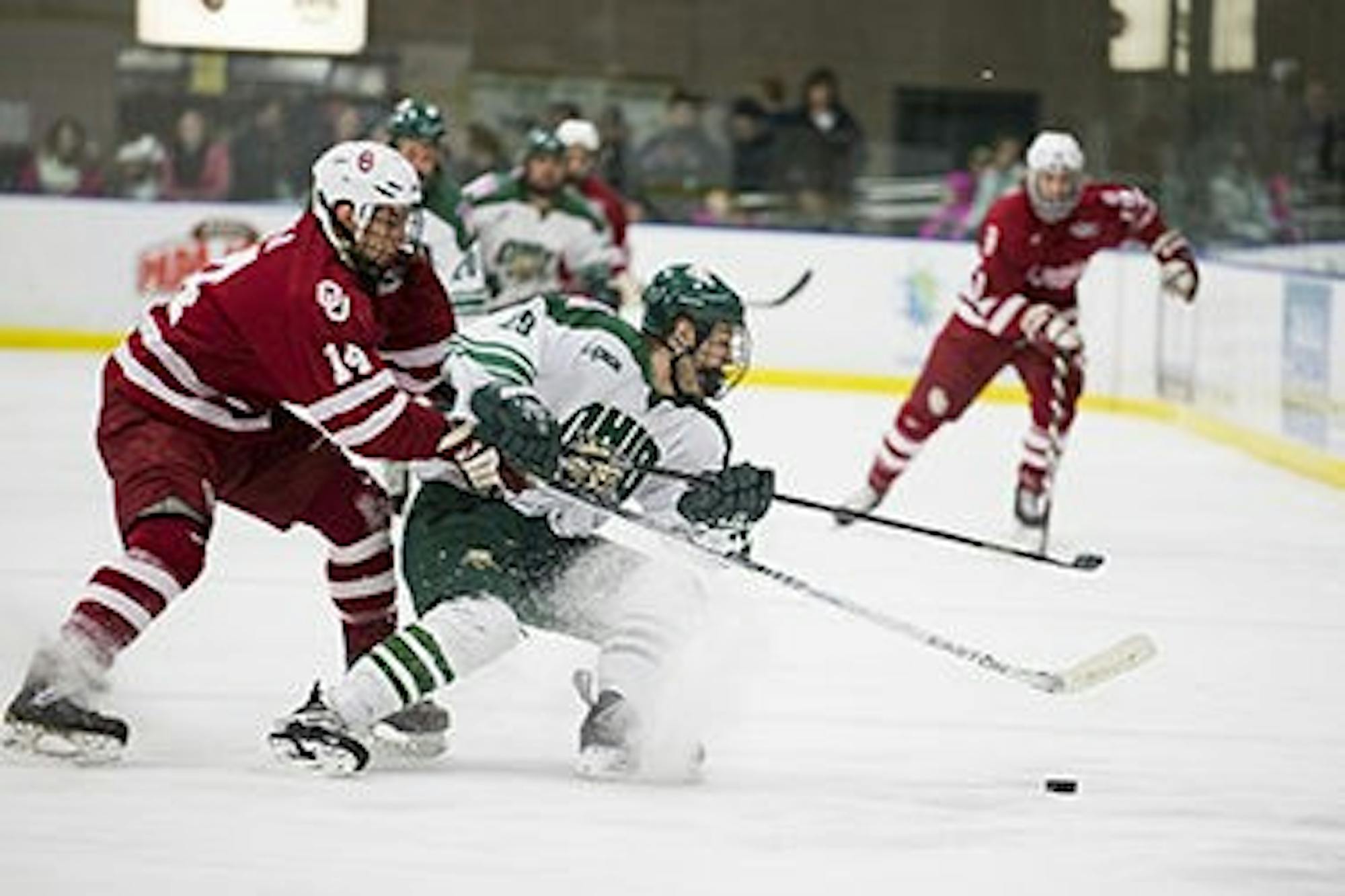 Sophomore forward Drew Crandall glided across the neutral zone at Bird Area, and senior forward Diego Breckenridge couldn’t contain himself any longer.