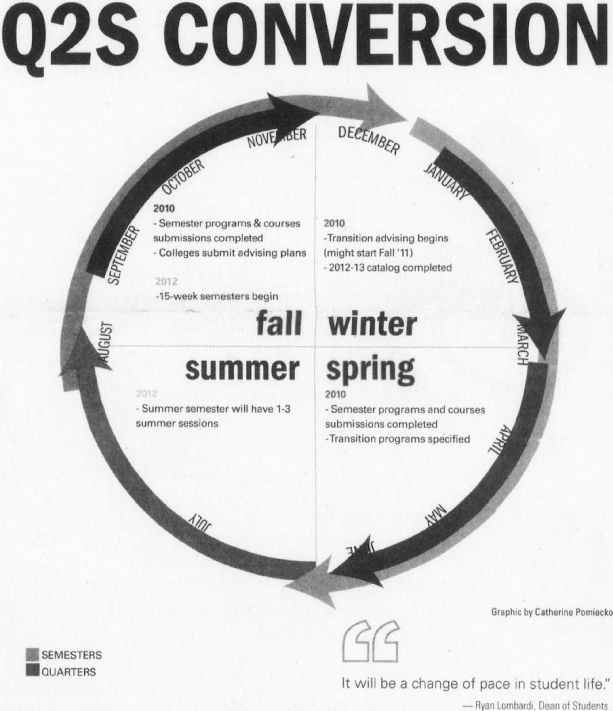 Before the transition was approved by the BOT, a committee, dubbed “The Quarters to Semesters Transition Team” was already forming plans to help departments and schools adjust their curriculum for a decrease in required credit hours from 192 hours to 120 hours.