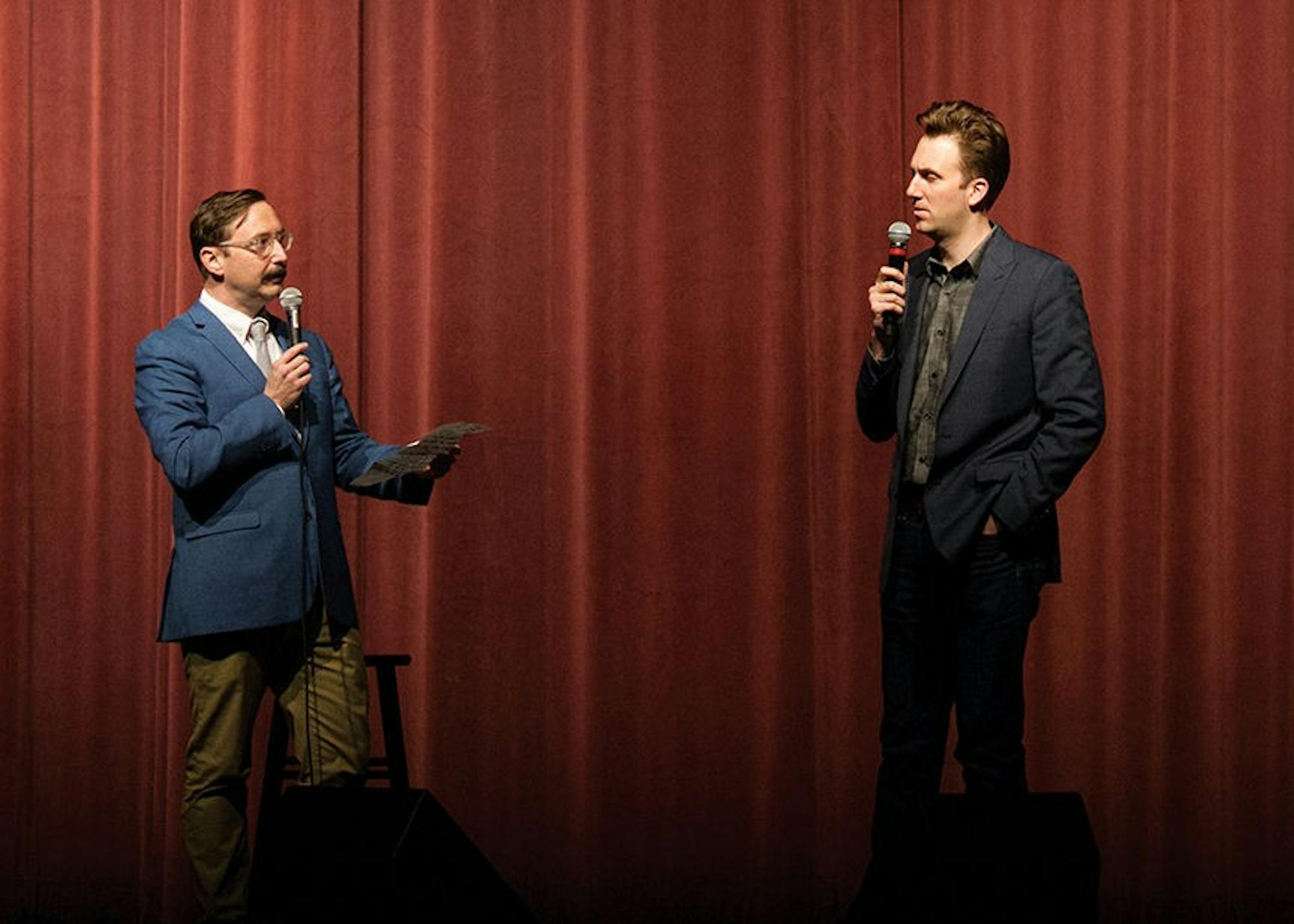 Jordan Klepper and John Hodgman wanted to make their stand-up comedy show appropriate for Dads Weekend — and that meant standing on stage reviewing guidelines for a PG-13 show.