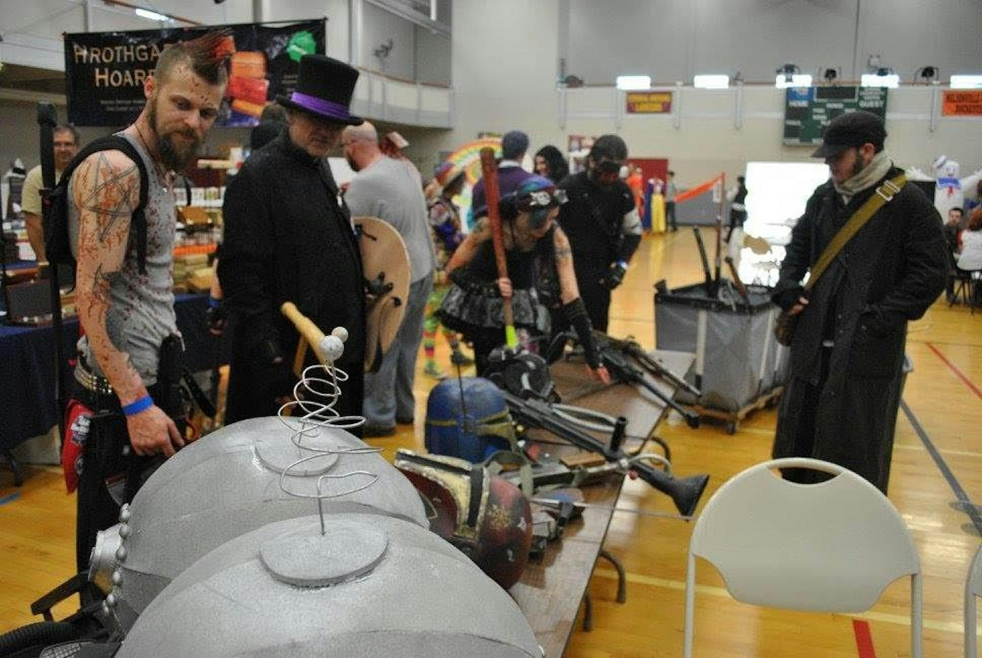 Airship Athena, a steampunk group in Athens, is one cosplay group attending the convention. Steampunk is a cosplay genre that combines Victorian and Edwardian dress with science fiction weaponry. Megan Rogers, who calls herself the captain of the airship, created the group.
