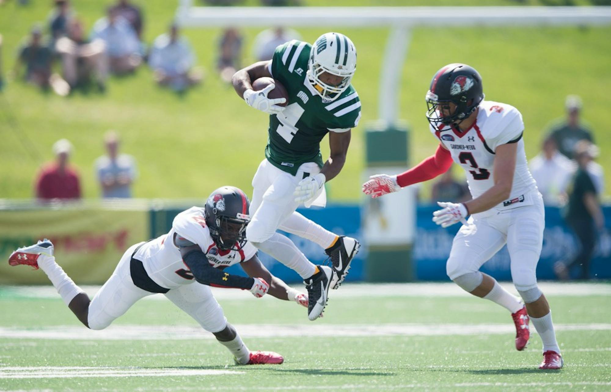 The move to offense wasn’t by choice. While Ohio comfortably cruised past Gardner-Webb 37-21 on Saturday afternoon at Peden Stadium, running back woes only grew and left Frank Solich bleakly staring ahead in the press conference.