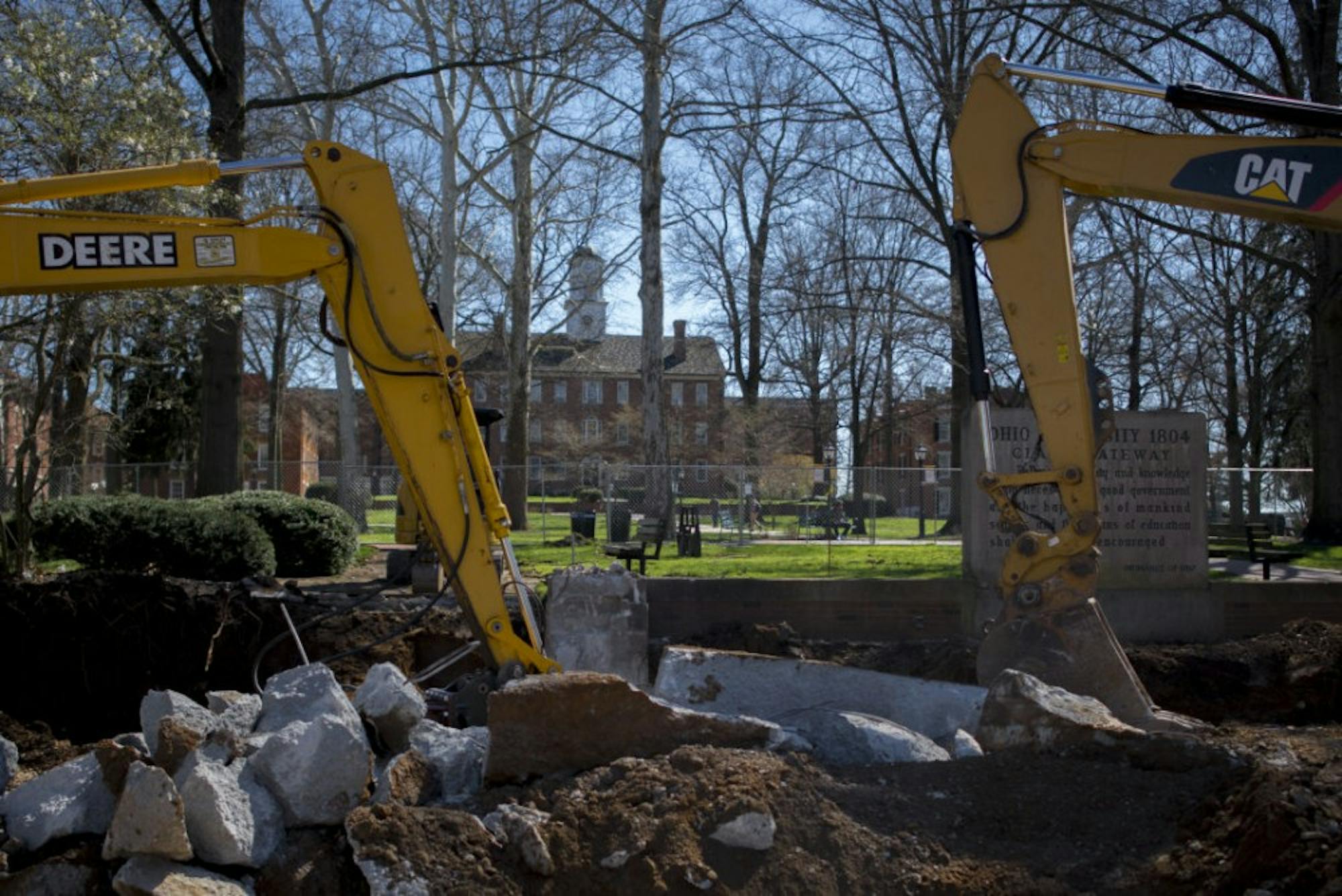 Excavators sit outside the class gateway while it is under construction on Tuesday.