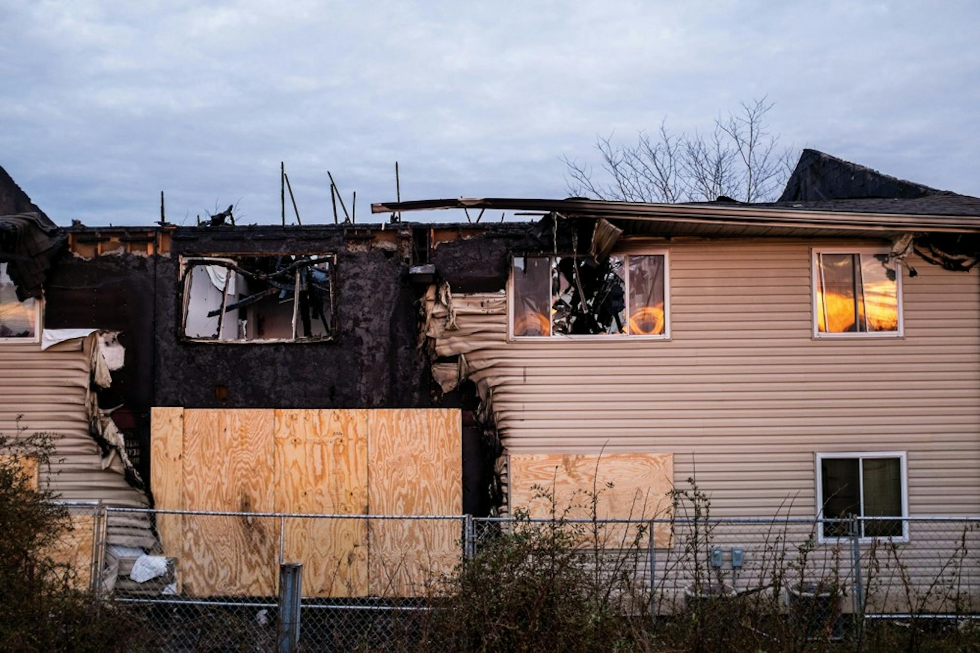 Wrapped in a blanket to protect herself from the cold wind, Cherikee Ray held a cigarette as she watched her home of nearly three years burn.