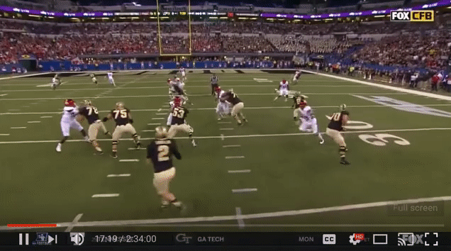 Sindelar was pressured left, but didn't take his eyes off of Anthrop as he broke toward the corner. Sindelar fired an excellent pass to the corner of the end zone. Anthrop scored, and Purdue took a 6-0 lead.
