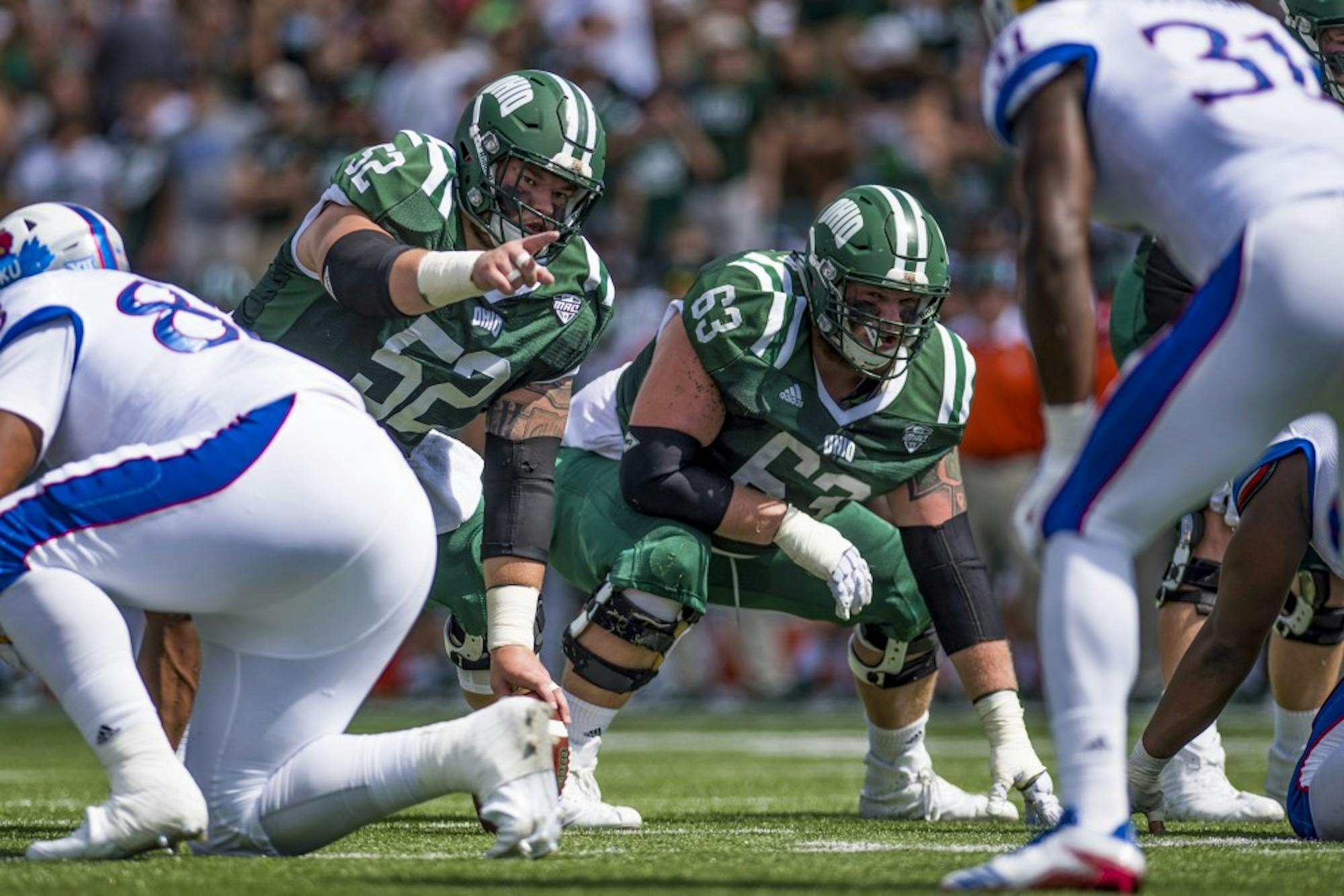 Ohio's offensive line will have some power to move out of the way for its running backs. The game could very well fall on the shoulders of Ohio's two guards and center: Joe Anderson, Hagan Meservy and Jake Pruehs.