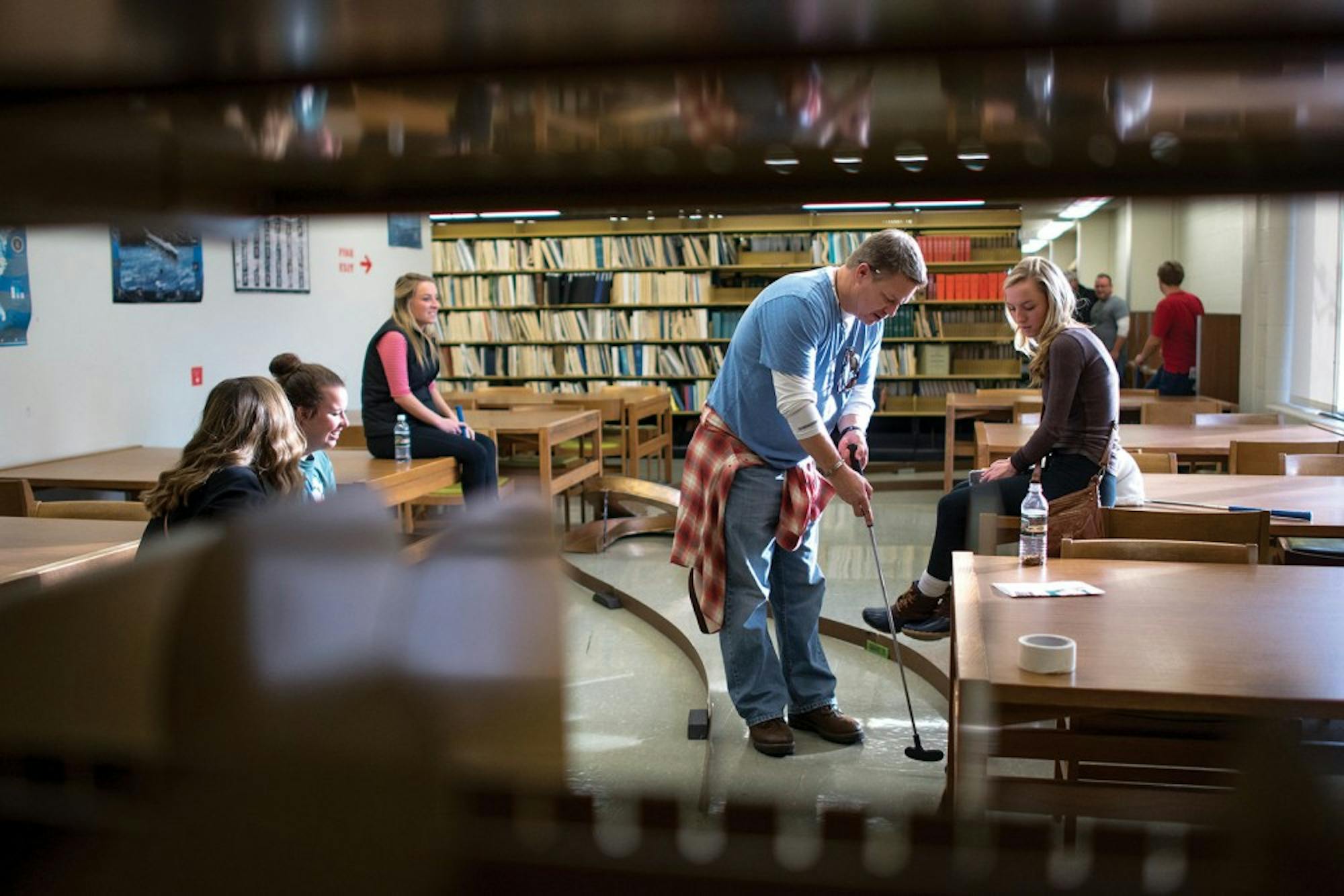 “There’s an 18-hole mini golf course in the library (and) it takes about 45 minutes to an hour to go through it,” said Barbara Fiocchi, coordinator of the event. “It’s on the fourth floor, the third floor and the first floor.”
