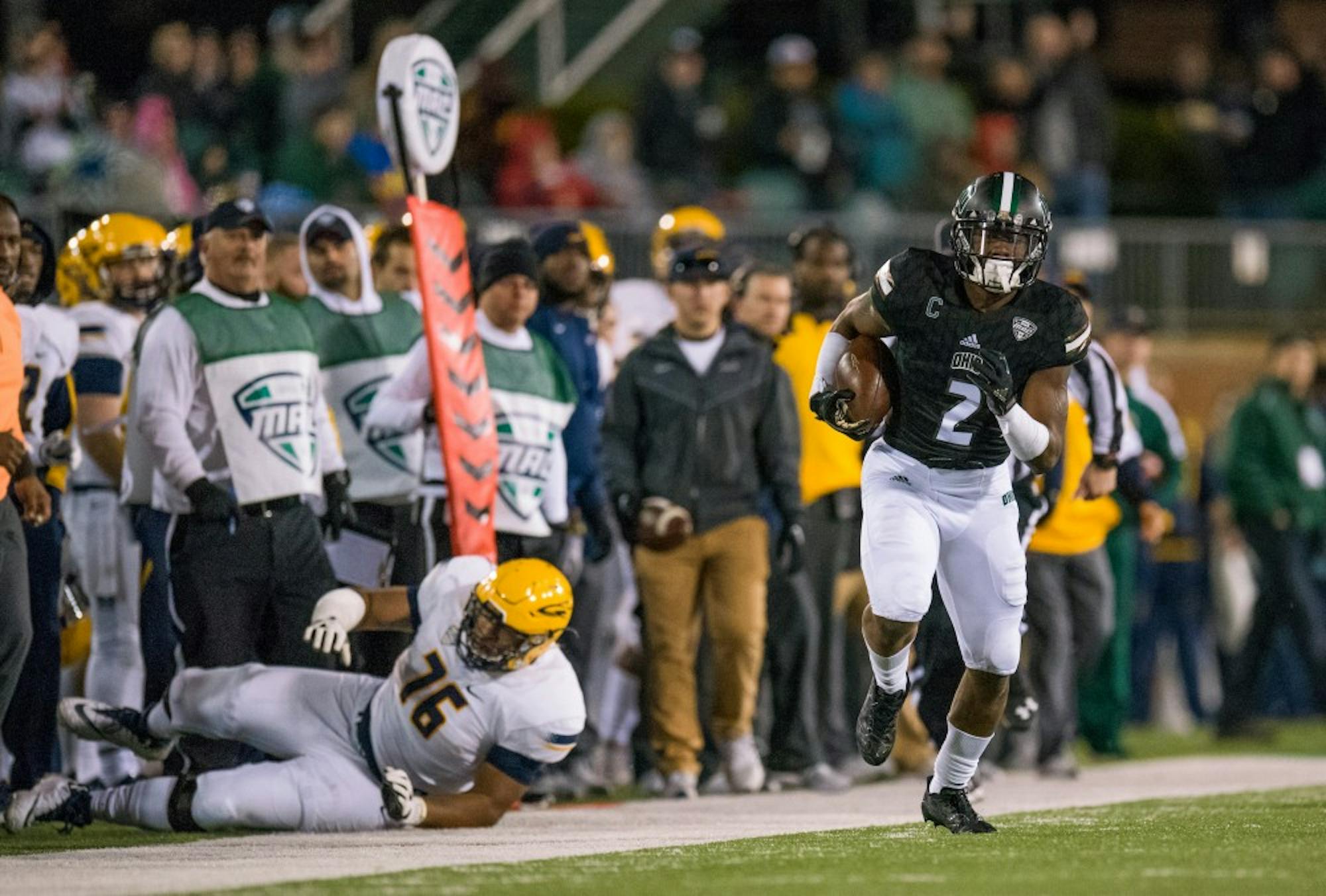 Ohio beat Toledo 38-10 on, relatively, its strongest defensive performance of the year. Logan Woodside is one of the best quarterbacks in the MAC, and the Bobcats' defense completely shut him down.