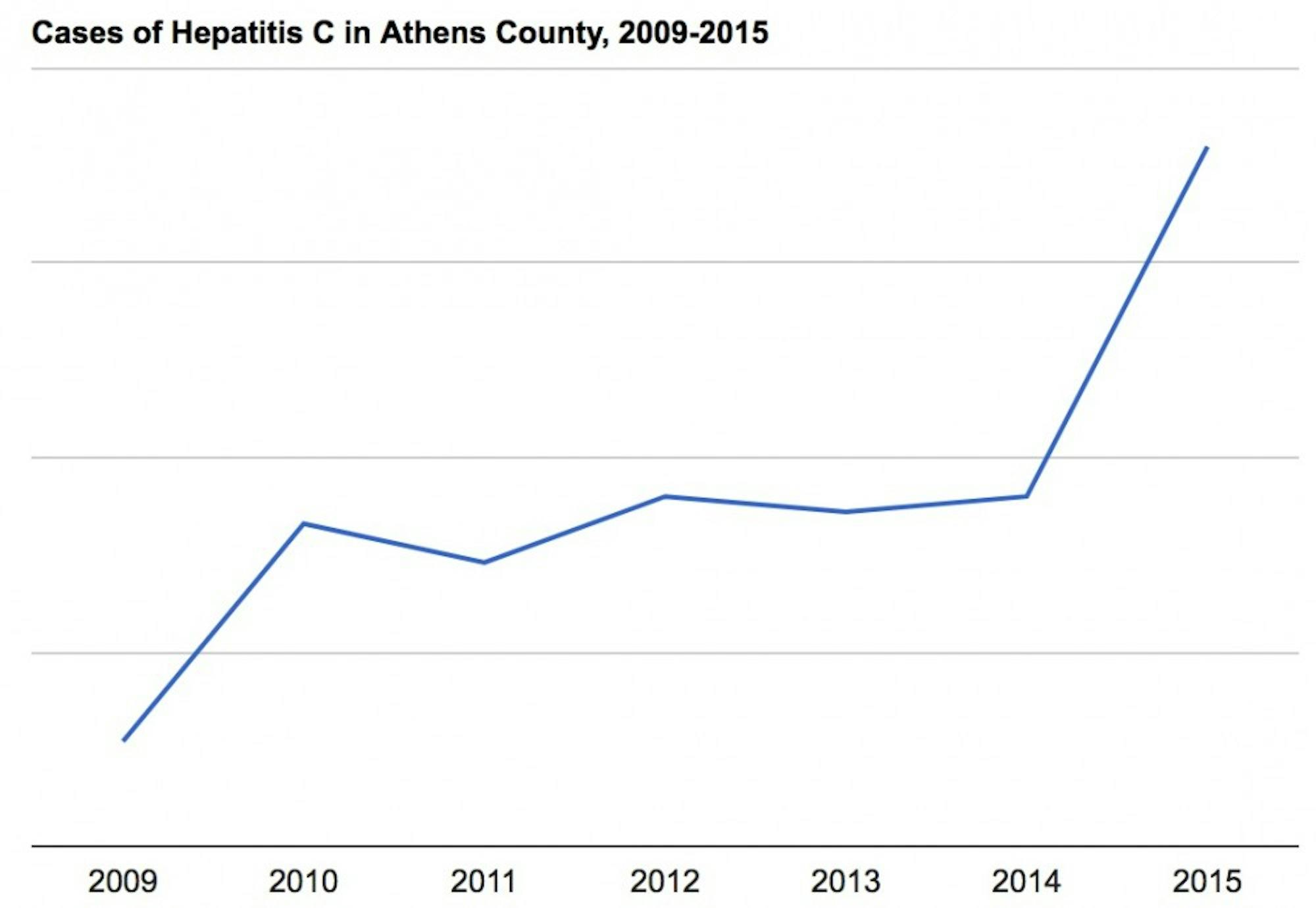 Athens has seen an increase in rates of hepatitis B and C, both of which can be passed through dirty needles. Hepatitis B cases increased from 28 in 2015 to 48 in 2016, Gaskell said.