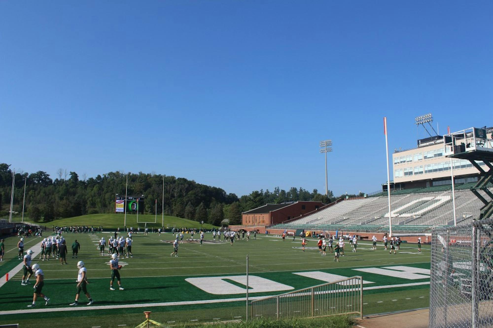 The Bobcats practicing Friday afternoon for the final time during fall camp outside in Peden Stadium.