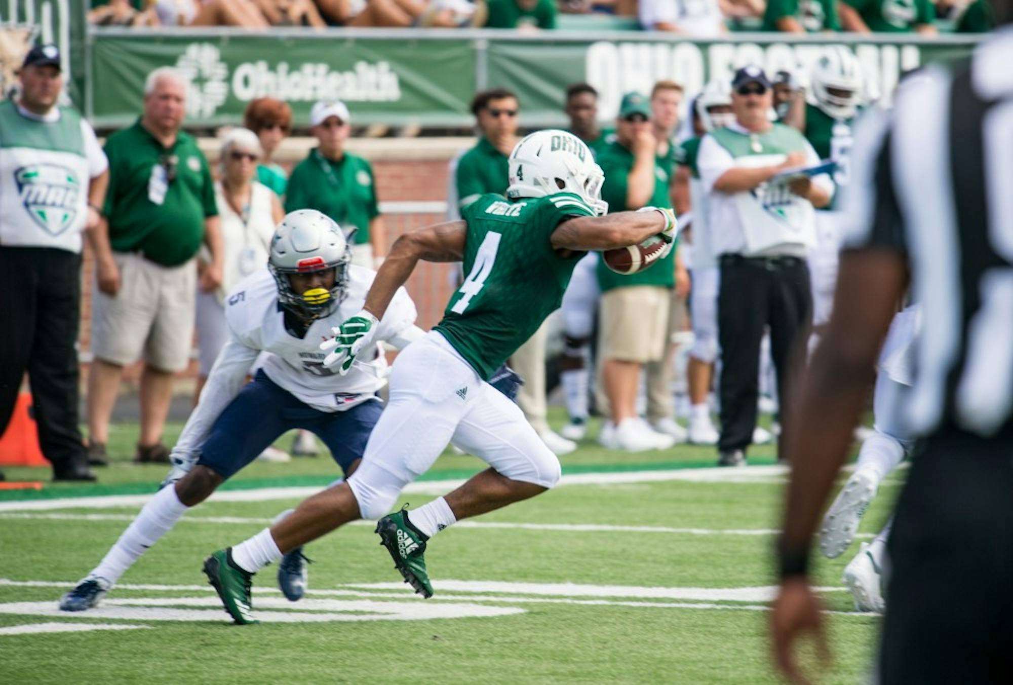 Ohio (1-0) squeezed by Howard (0-1) on Saturday with a 38-32 win at Peden Stadium. Quinton Maxwell replaced Nathan Rourke as quarterback at the start of the second quarter, and the special team excelled.