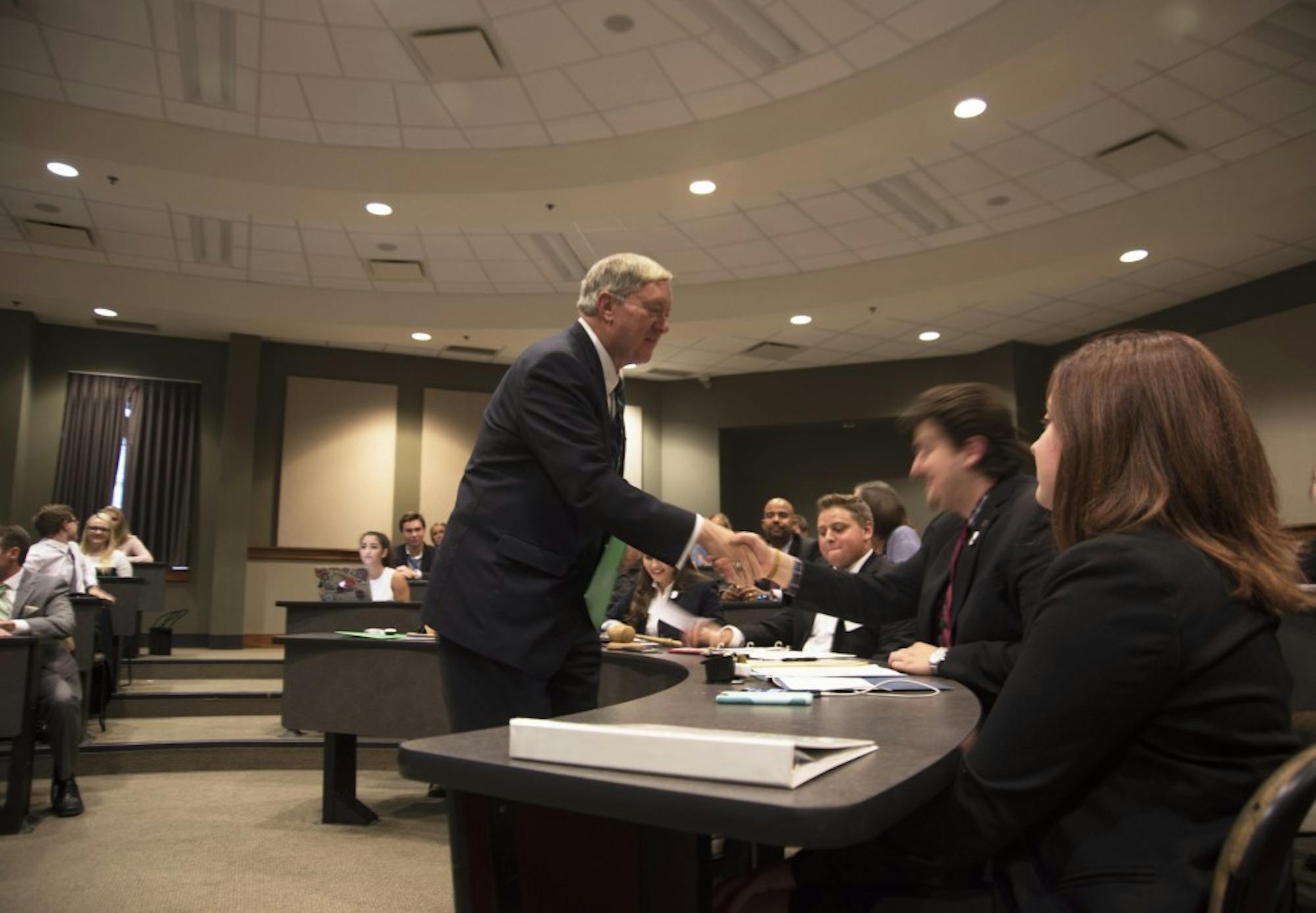 Ohio University President Duane Nellis presented at the Student Senate meeting Wednesday.