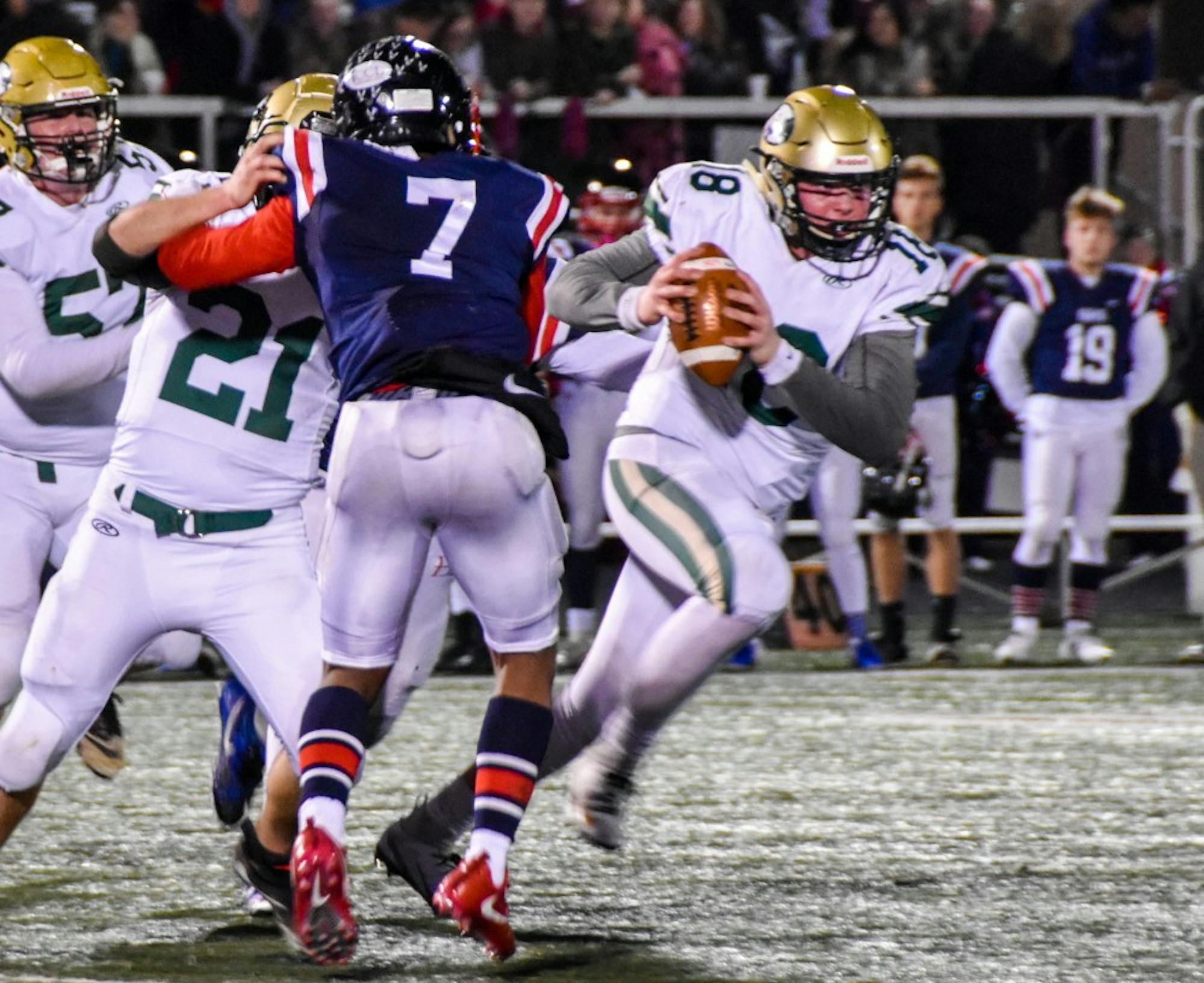 With the ball deep in Hawks territory, Davis — who was picking Hartley apart — was intercepted on a pass that bounced off Maxfield’s hands into the palms of Hartley’s Ryan Heuser.