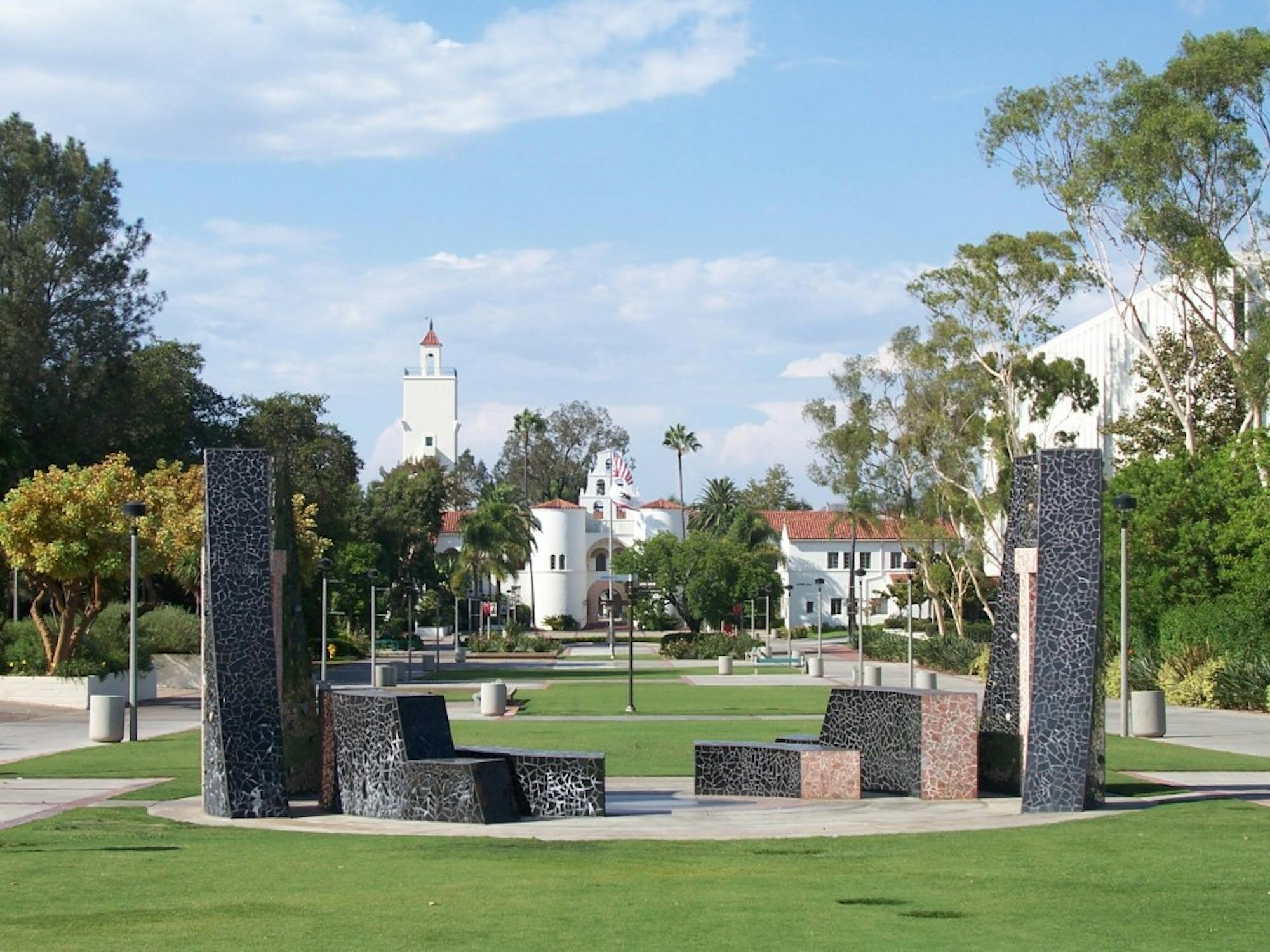 Not until the 1920s, when the college started to outgrow its Park Boulevard location, San Diegans launched a campaign to build a new campus on the city’s eastern boarder. In February 1931, students, faculty and staff moved into seven Mission Revival-style buildings surrounding a common area still known today as the Main Quad.