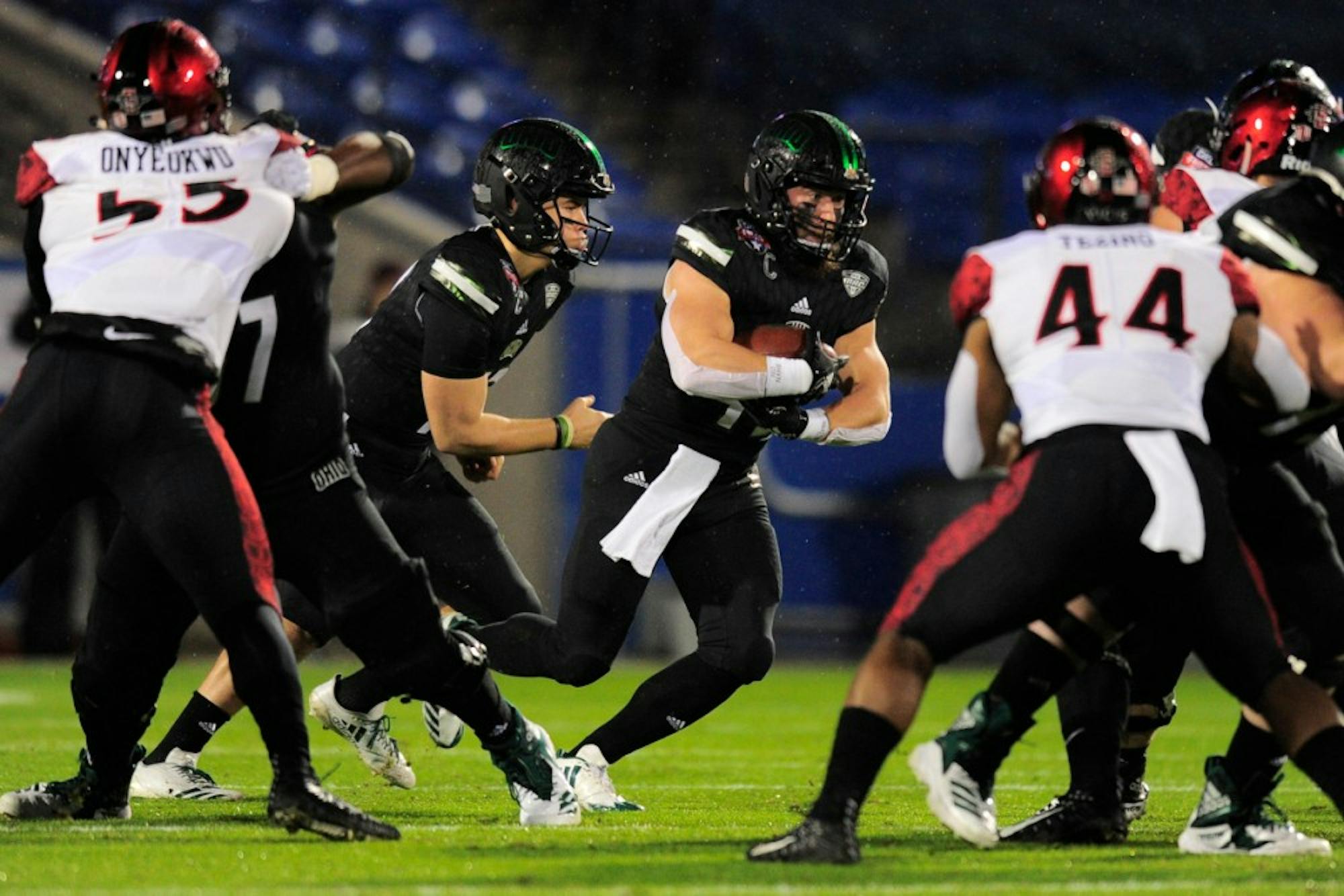 Moments later, Ouellette was on the makeshift stage at midfield, standing behind the DXL Frisco Bowl trophy he had just earned. The game’s offensive MVP, Ouellette provided a fitting end to his storybook career in Ohio’s 27-0 shutout win over San Diego State.