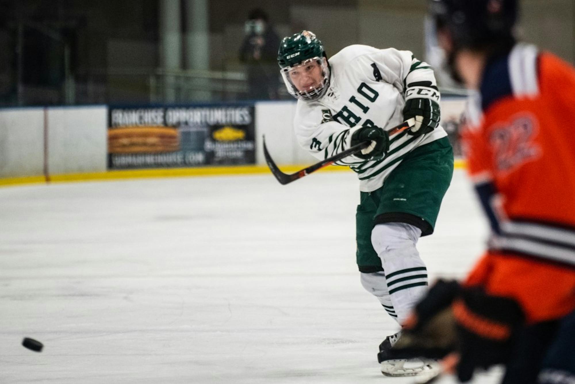 Grant Hazel skated off the ice with a grin on his face and his head held high. The senior defenseman took one final look at the crowd in Bird Arena before entering the locker room after Ohio’s 4-3 overtime win against league rival Illinois.