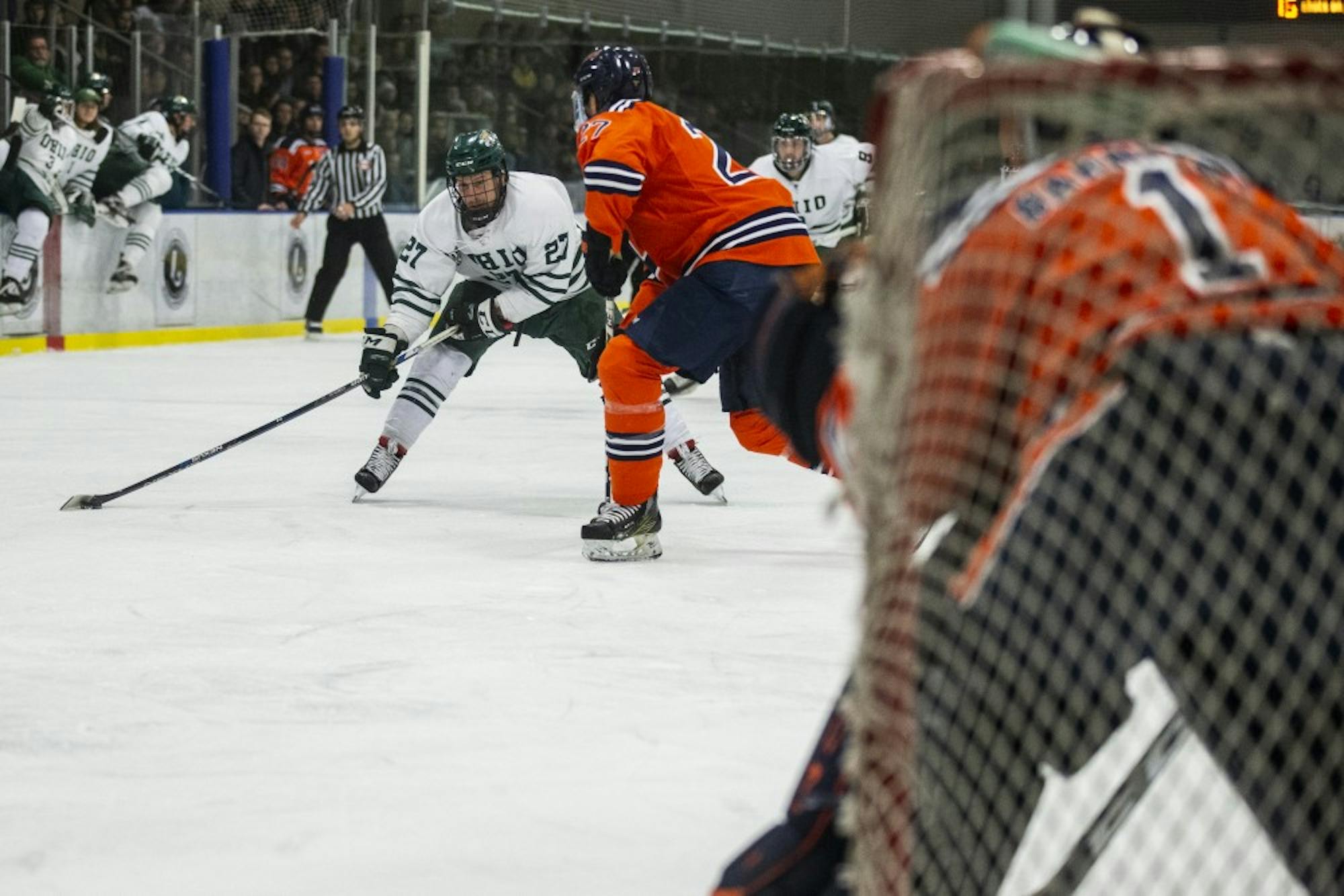 Ohio wrapped up its fall semester slate with Illinois. The teams split the series. Illinois picked up a shutout win on Friday and Ohio won in overtime on Saturday. Matt Rudin scored the game-winning goal off his helmet. The Bobcats will look to have a better performance on the road against the Illini.