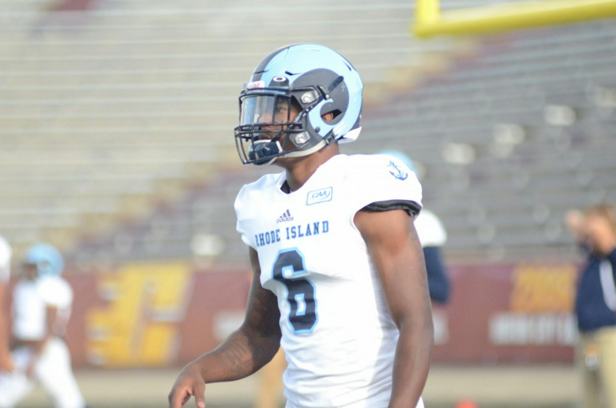 Wide Receiver Aaron Parker (#6) during the URI versus UD football game in 2018. Photo provided by @rhodyfootball via Twitter