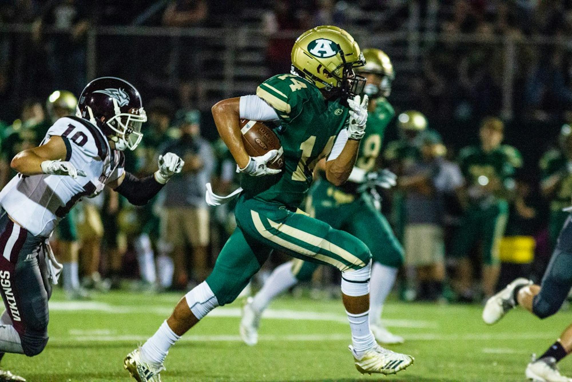 On a fourth-and-2 play, Vikings quarterback Braylon Damron took the snap and handed the ball to Jacob Wells. The running back tried to break free just as he had all night long, but was stopped short by a pack of Athens defenders.