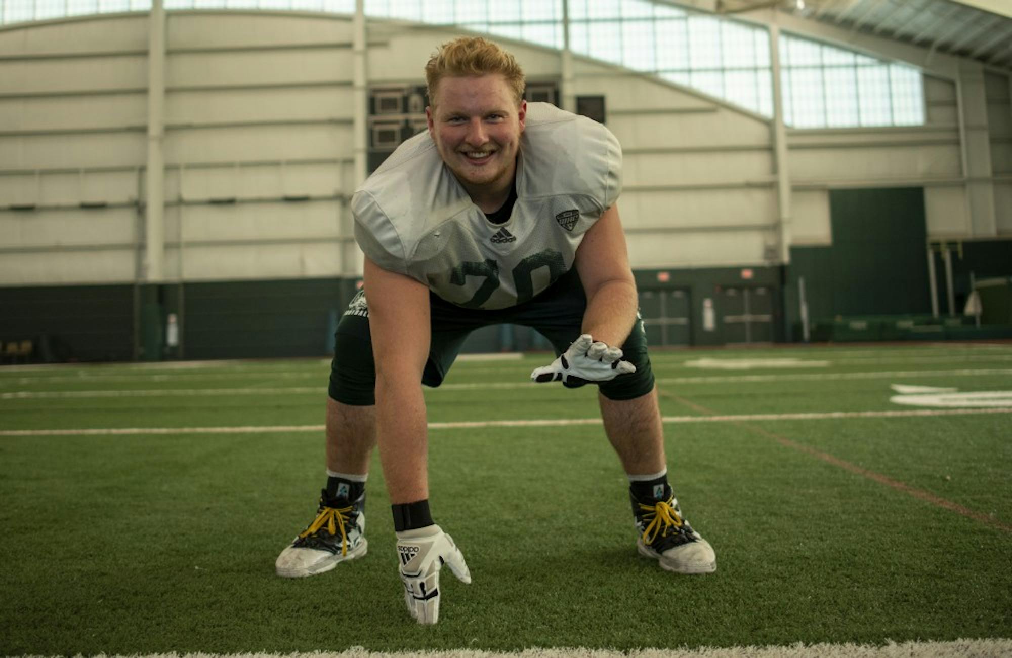 On his left side is Brett Kitrell, one of the more experienced interior offensive linemen on the Bobcats’ roster. Kitrell has played at both guard and center the last two seasons, but he didn’t have much to say much to Sink. He knows he’d be prepared to take the field whenever Ohio needed him to.