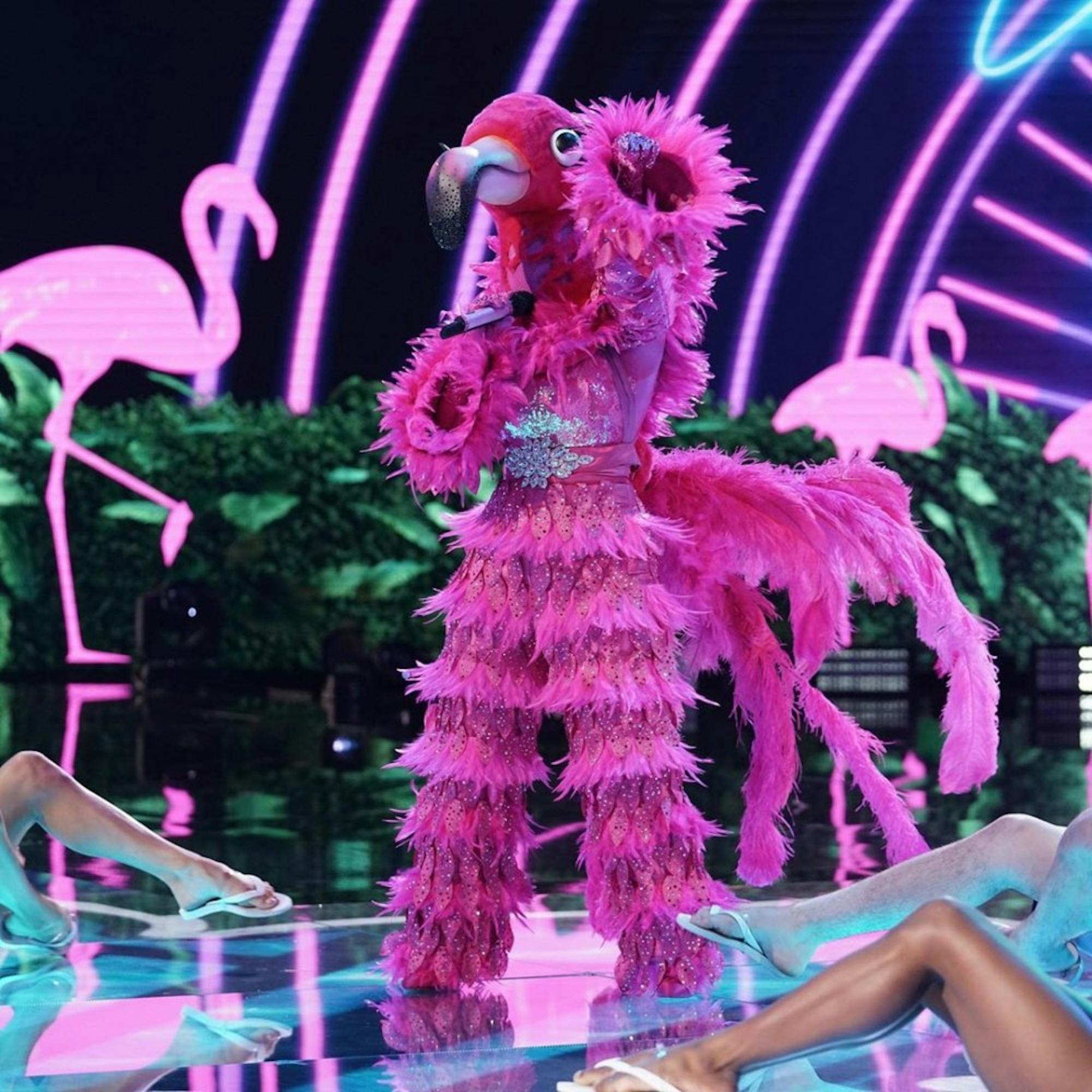 One of the most important clues from the Flamingo’s clue package was her going from “hood rat to Hollywood triple threat.” She later states she was discovered by a powerful wizard, who allowed her to pursue her dreams. After a stellar rendition of “Footloose” by Kenny Loggins, it’s evident this celebrity knows what she’s doing behind the mic.