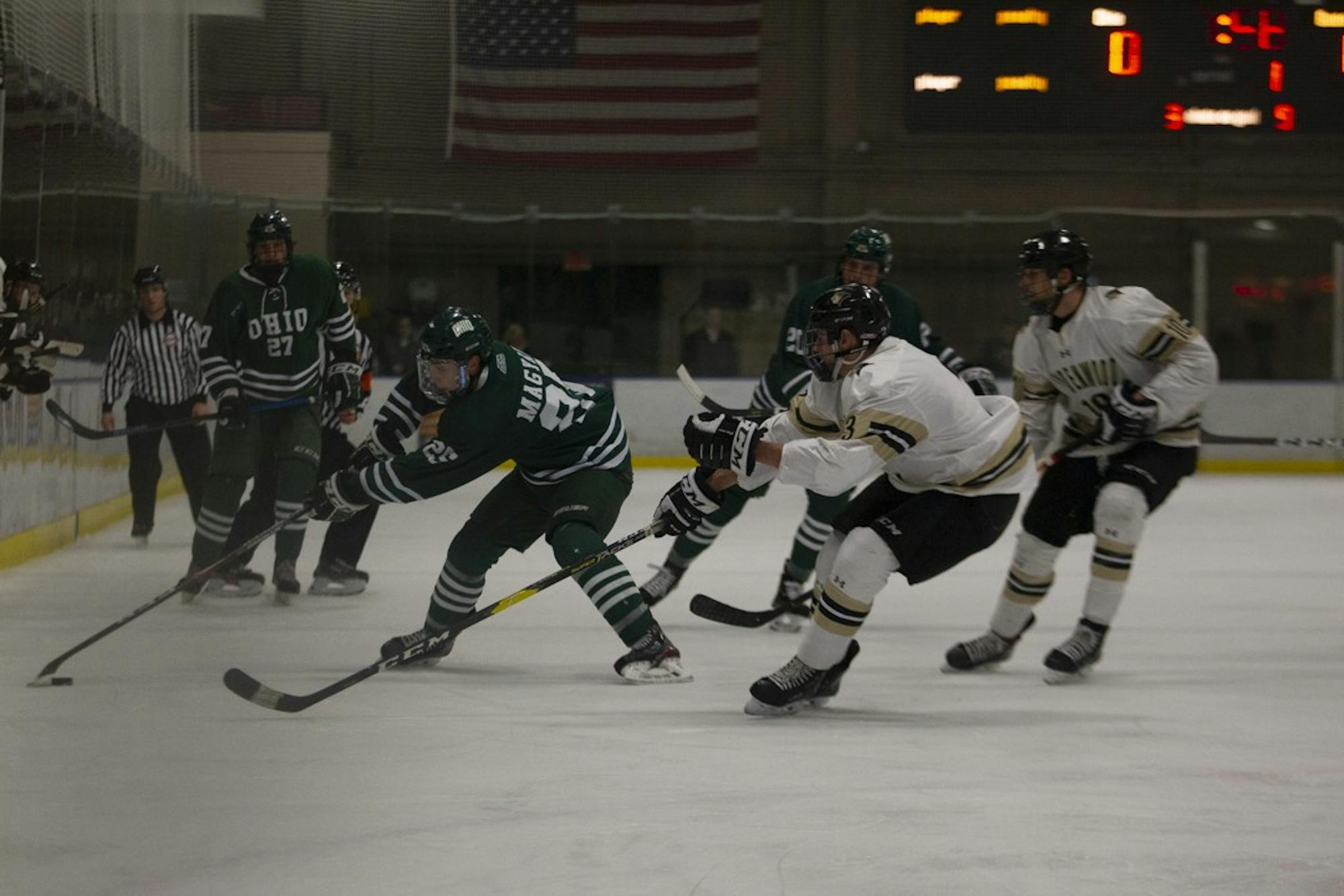 Both teams watched as the black piece of rubber went farther away from Ohio’s zone and then the final horn signaled the end of the game. Ohio's bench jumped over the boards and piled into Jimmy Thomas' crease as the Bobcats defeated No. 3 Lindenwood 2-1 in a much-needed win over a ranked opponent.